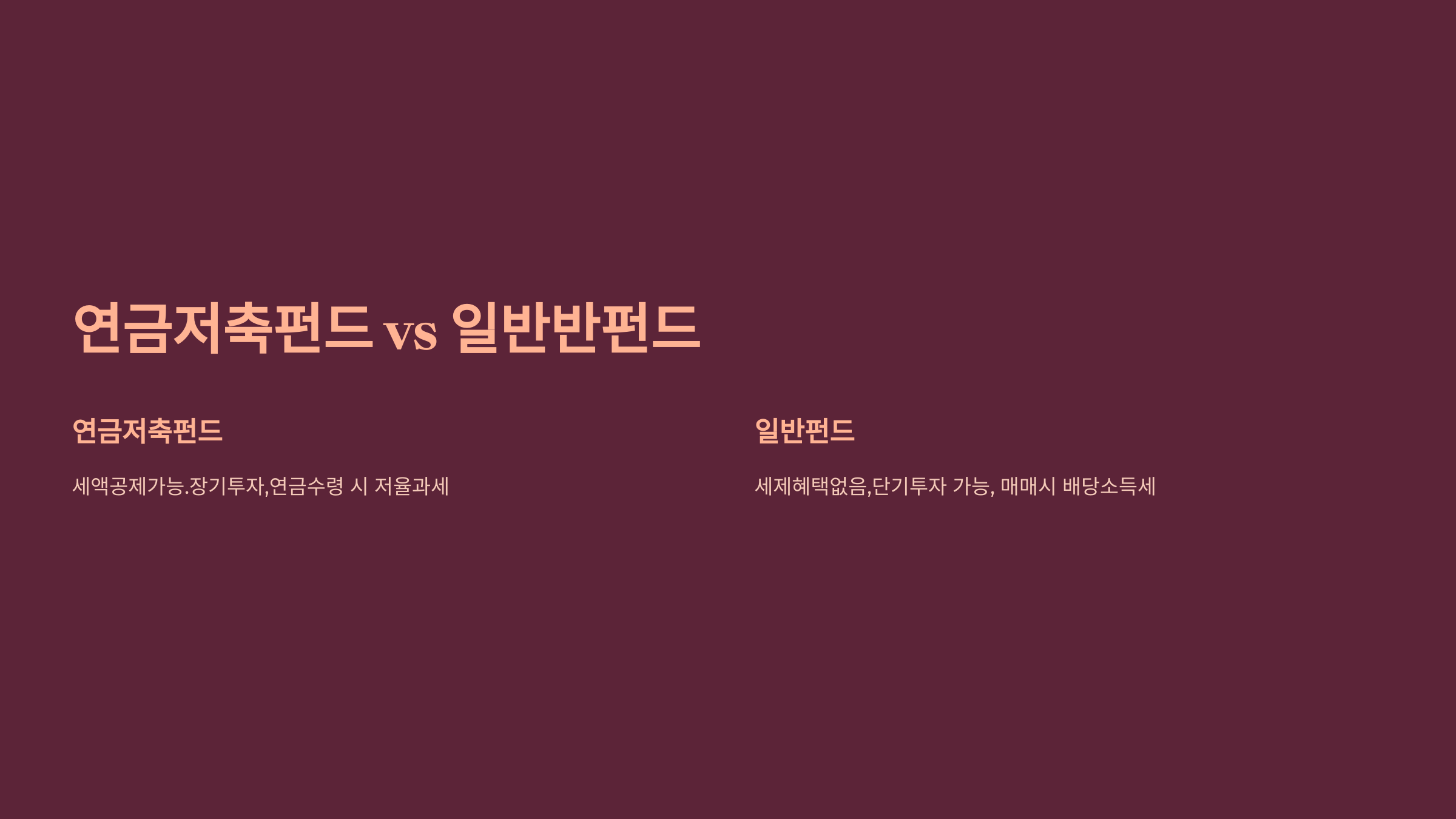 | 구분 | 연금저축펀드 | 일반 펀드 |