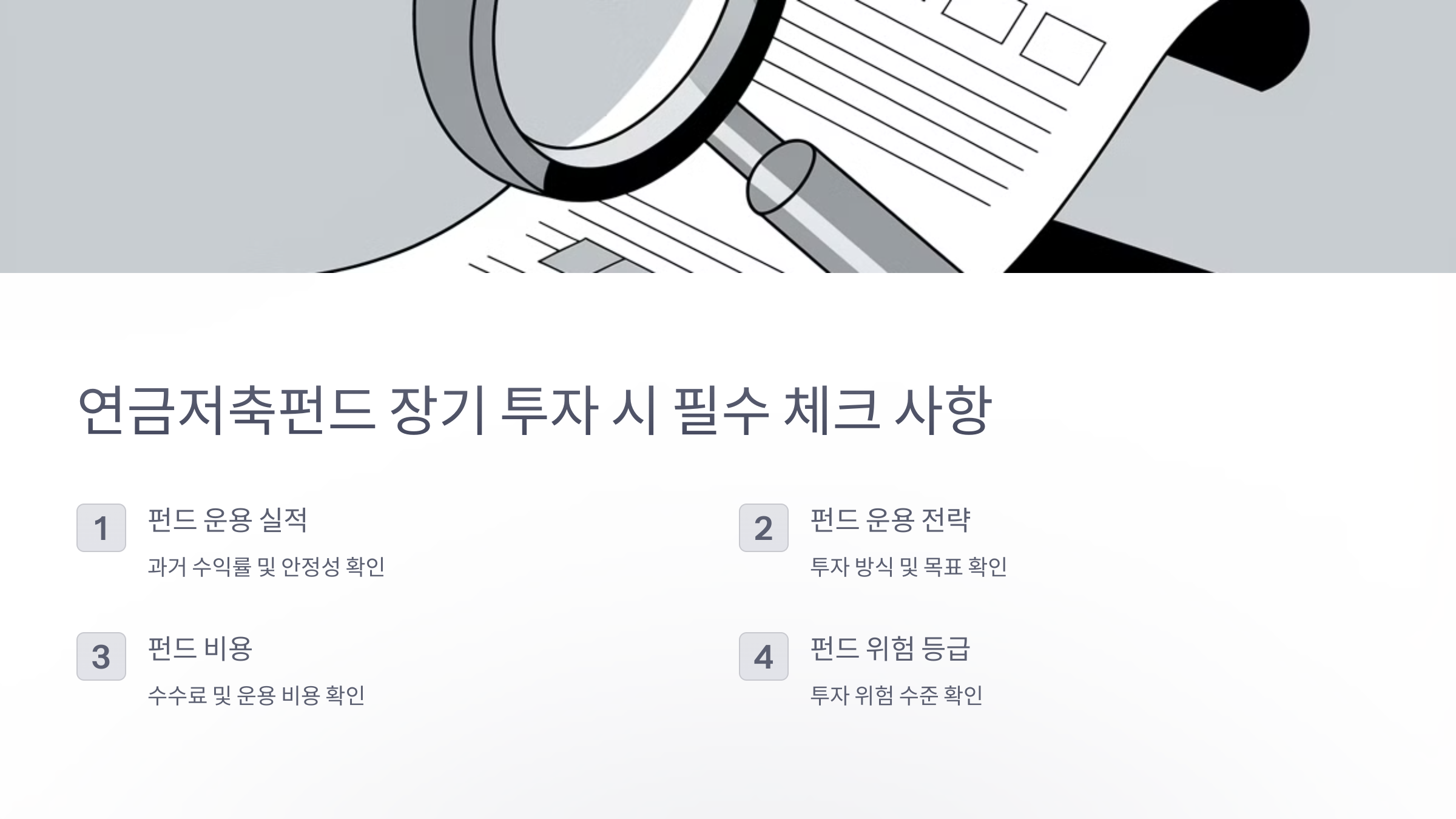 연금저축펀드는 단기적인 시장 변동에 흔들리지 않고 장기적으로 운용하는 것이 가장 중요해요. 하지만 장기 투자를 하면서 반드시 확인해야 할 체크리스트가 있어요. 투자한 펀드를 그냥 방치하면 원하는 수익률을 얻지 못할 수도 있답니다.
