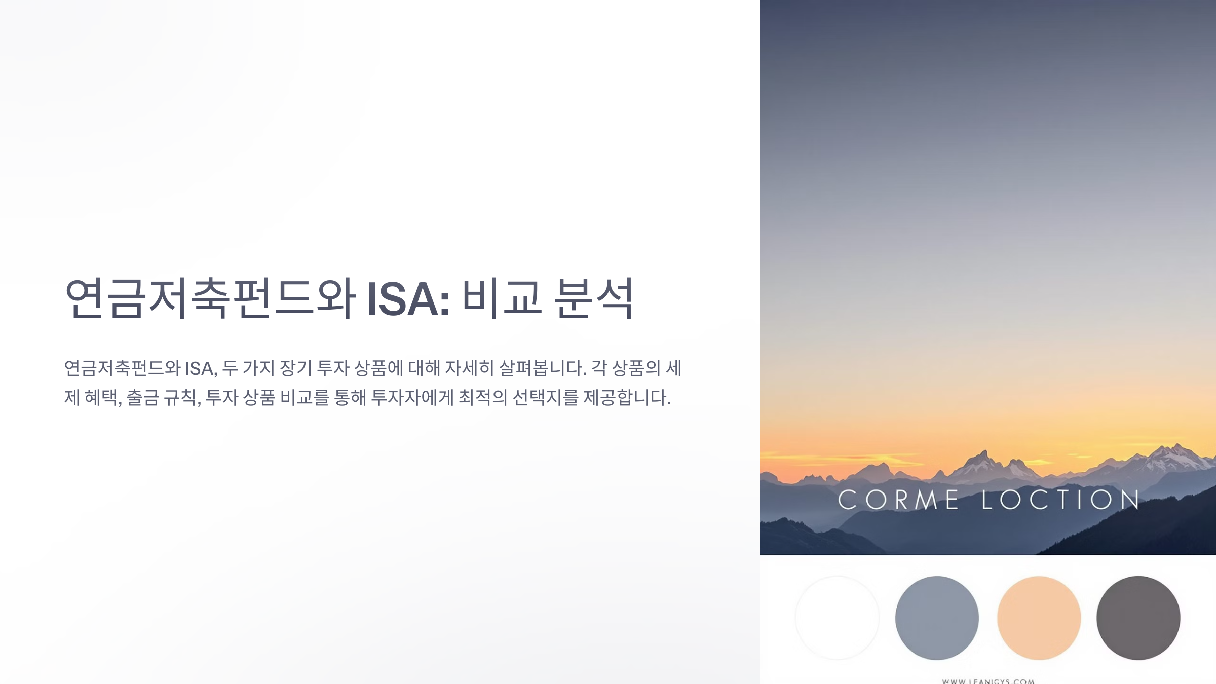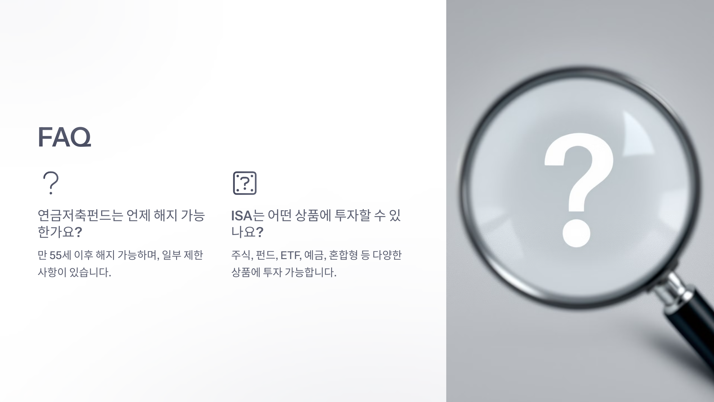 | 목적 | 노후 대비 장기 투자 | 자산 증식 및 단기~중기 투자 |