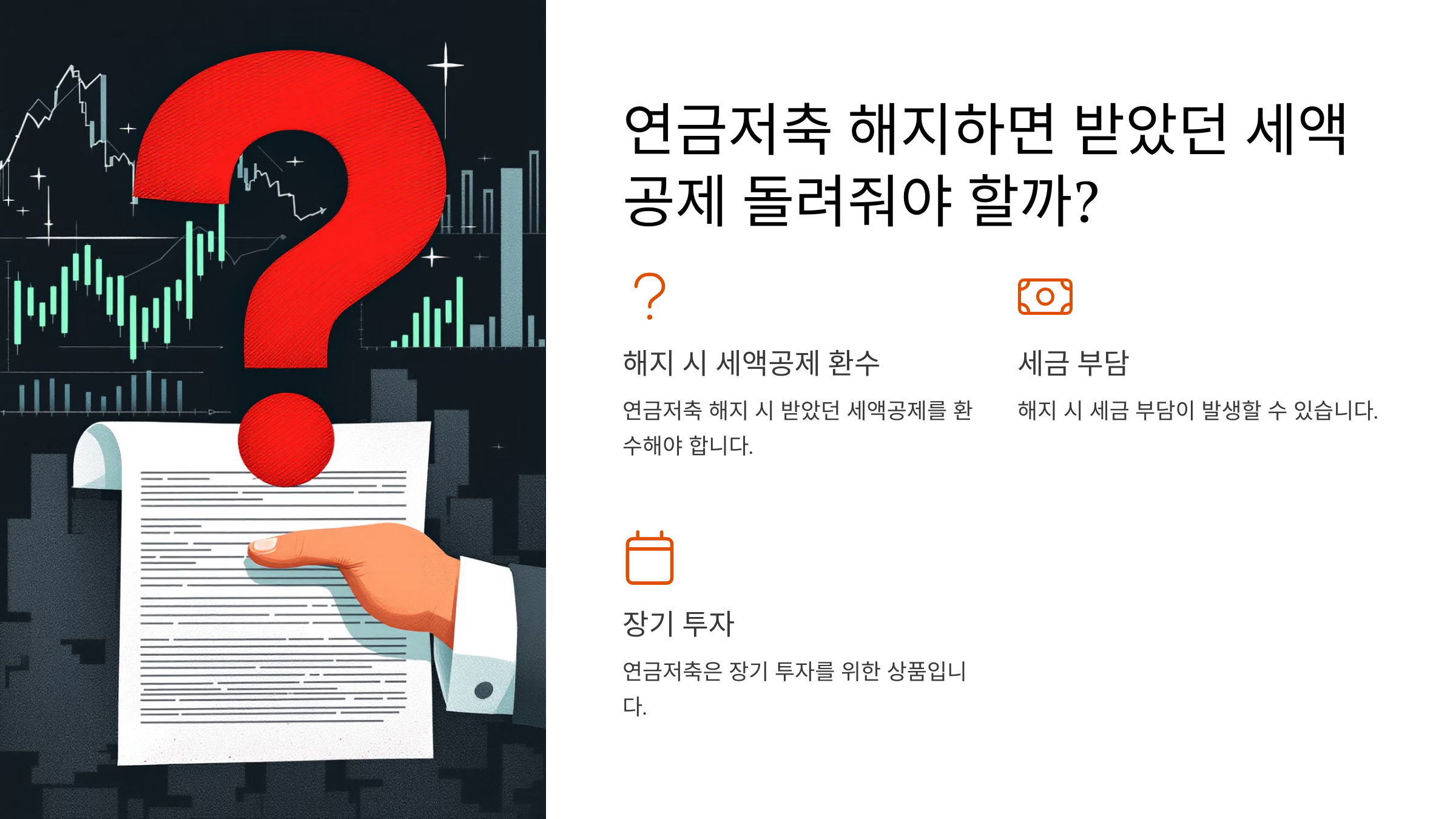A3. 네, 해지하면 기존에 받았던 세액공제 금액을 다시 돌려줘야 해요. 따라서 가급적이면 장기적으로 유지하는 것이 좋아요.