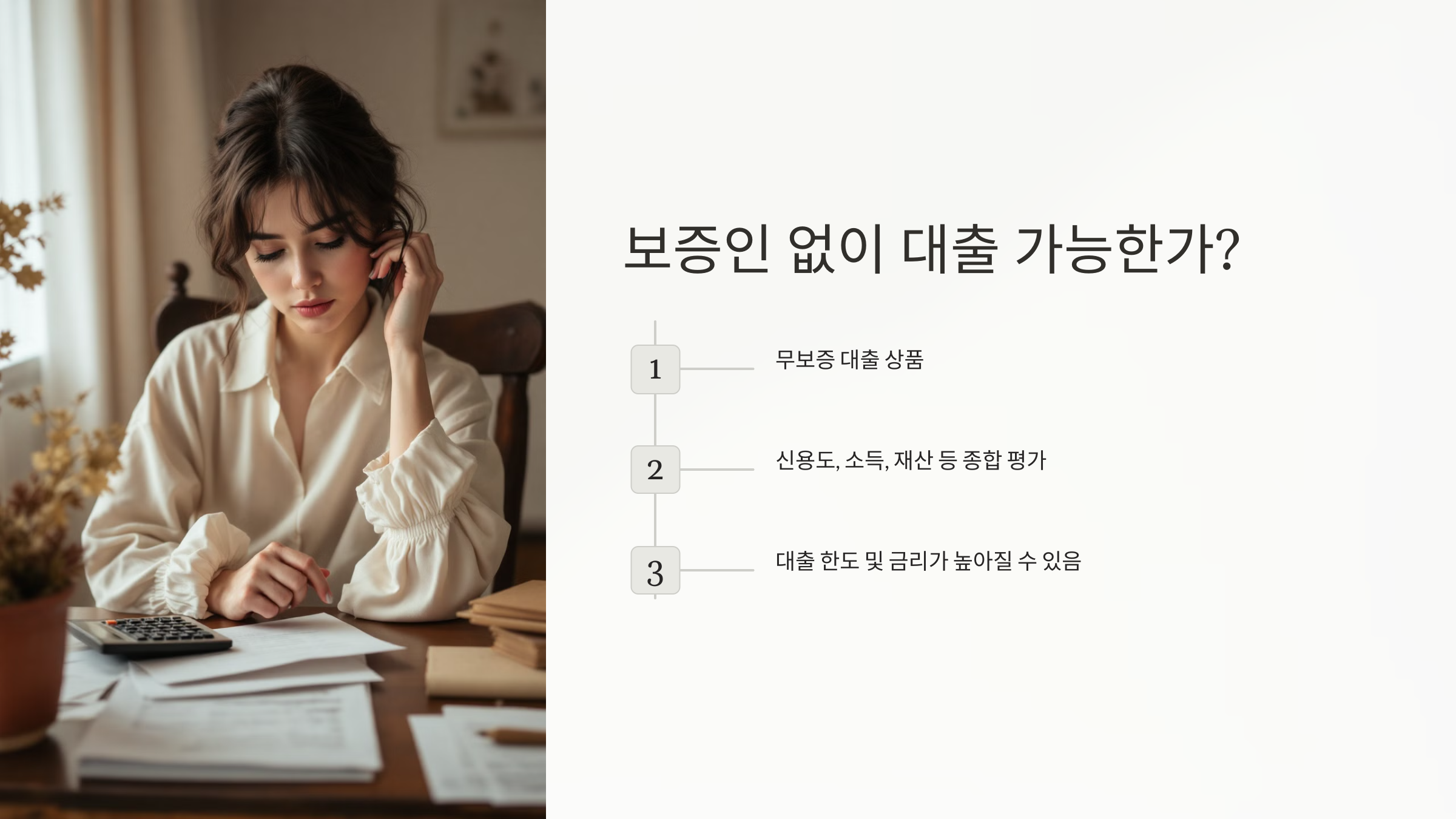 대출을 신청할 때 보증인이 필요한 경우가 있지만, 보증인 없이도 대출을 받을 수 있는 방법이 있어요. 일반적으로 보증인이 필요하지 않은 대출 상품을 선택하거나, 본인의 신용등급과 소득을 증빙하면 보증인 없이도 대출 심사를 통과할 수 있어요.