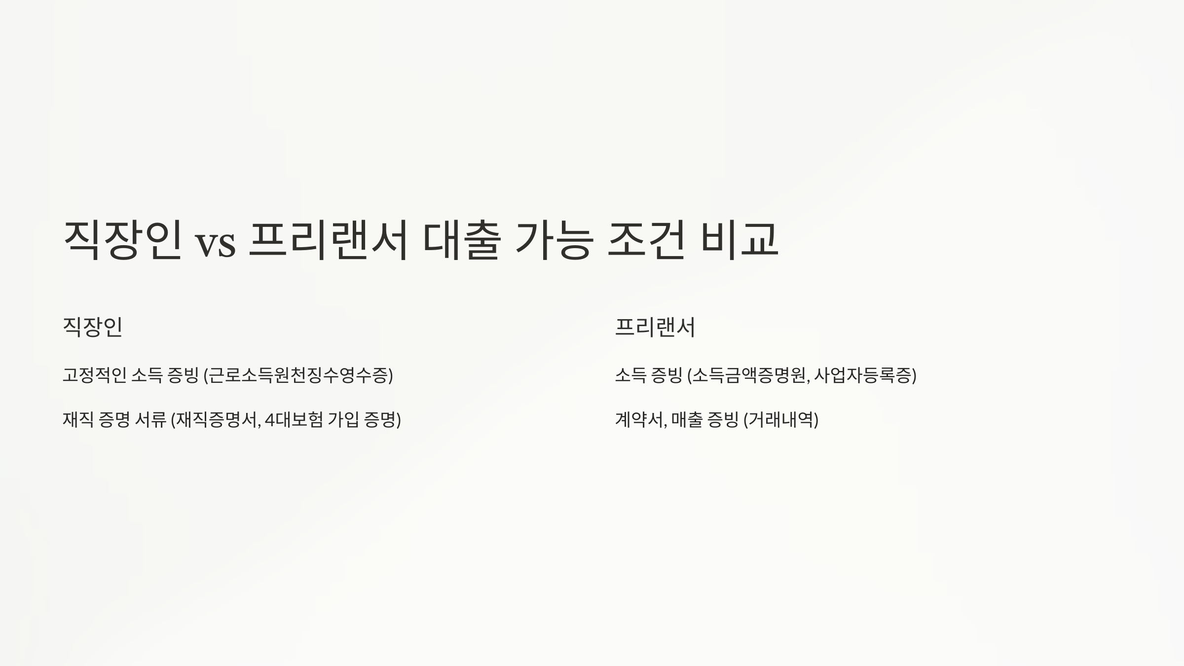 💰 직장인 vs 프리랜서 대출 조건 비교