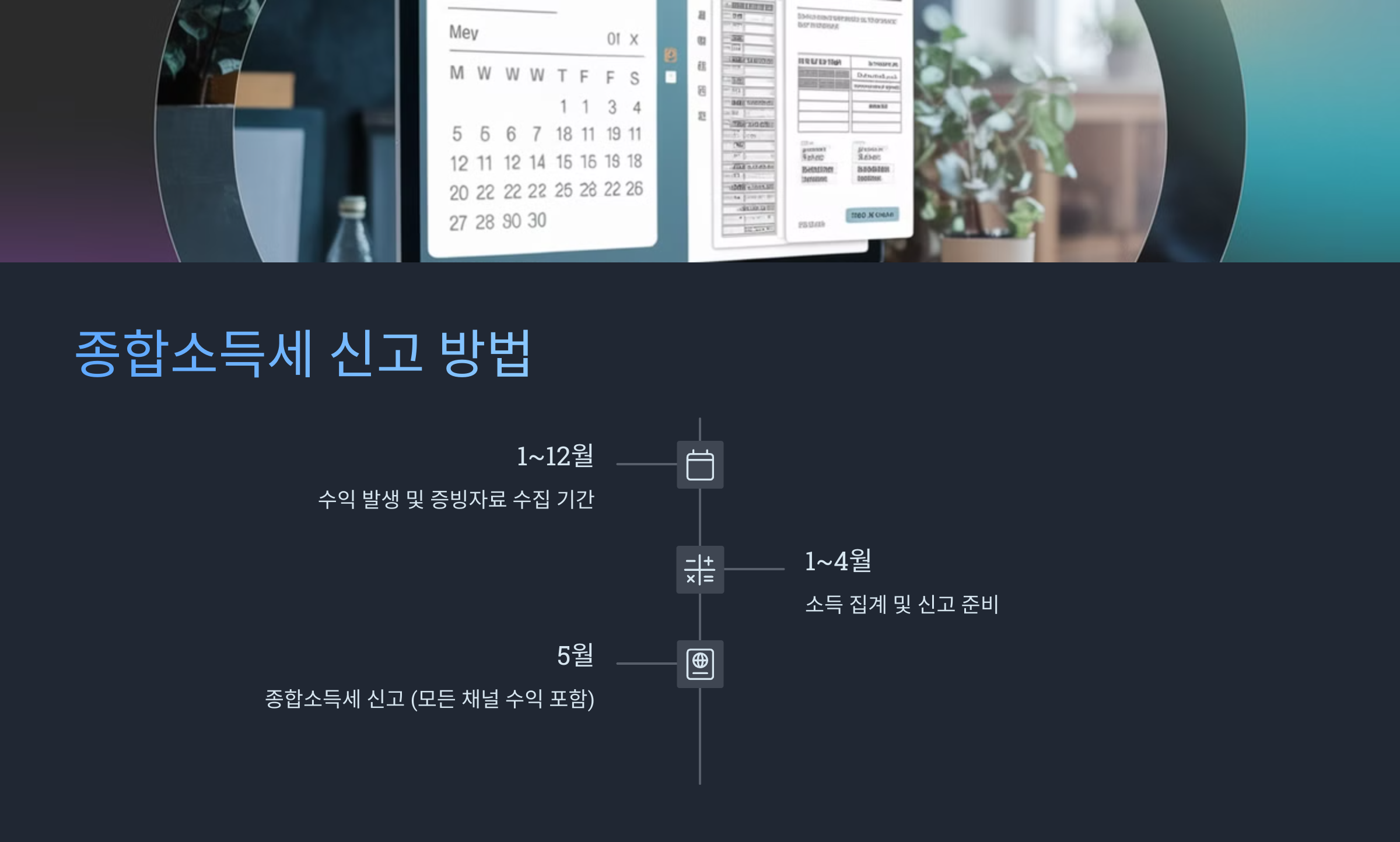 유튜브 수익이 발생하면 ‘종합소득세’ 신고를 해야 해요. 신고는 매년 5월, 홈택스 또는 세무사를 통해 진행할 수 있어요.