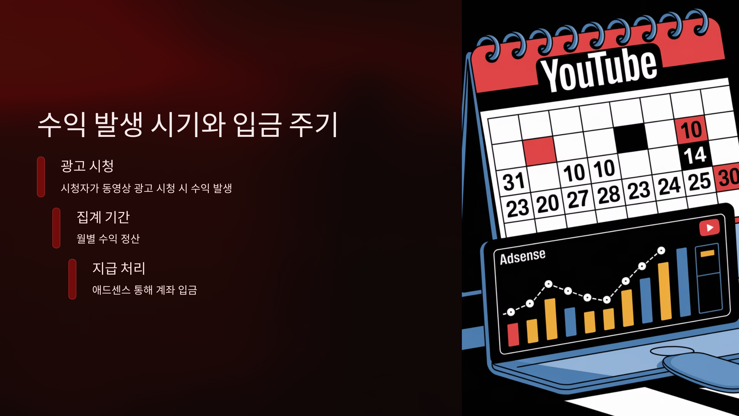 입금 계좌는 애드센스 설정에서 등록할 수 있고, 수익 누적 현황은 유튜브 스튜디오 분석 메뉴에서 실시간으로 확인할 수 있어요.