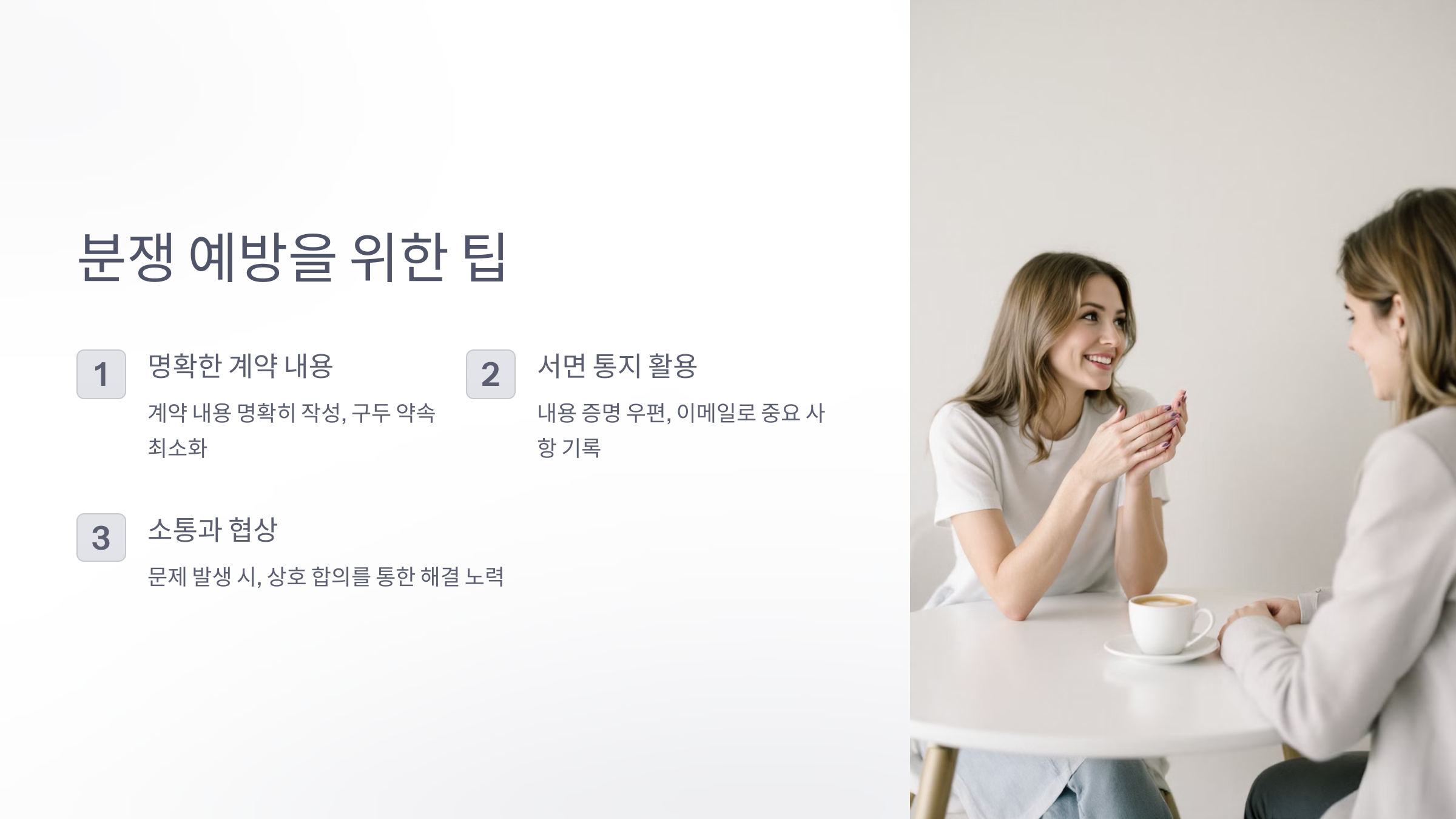 임대차 계약은 원만한 관계 유지와 정확한 약속 이행이 무엇보다 중요해요. 아래는 분쟁 예방을 위해 기억해야 할 팁이에요.
