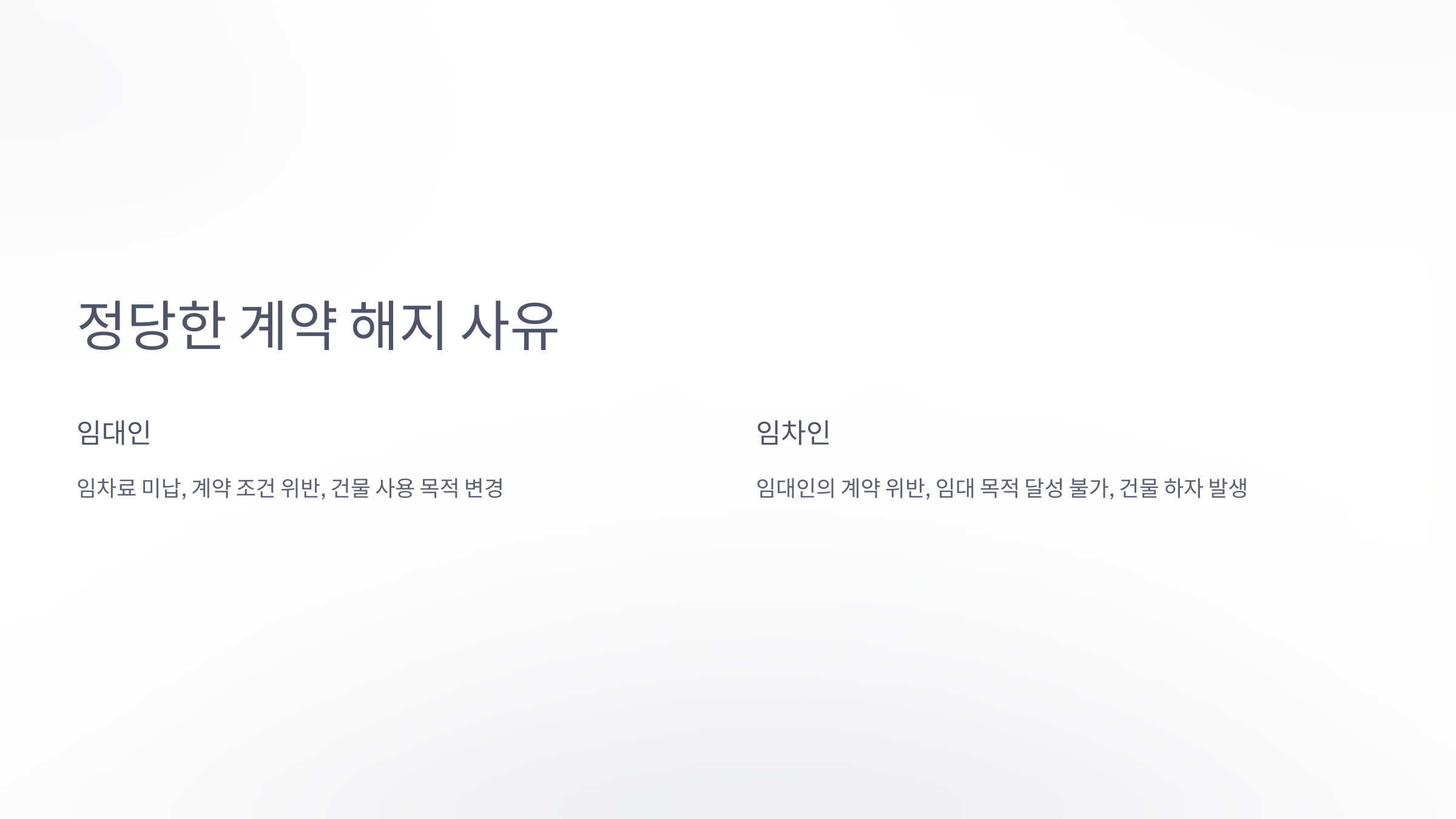 1. 임대인의 정당한 해지 사유는 대표적으로 다음과 같아요: