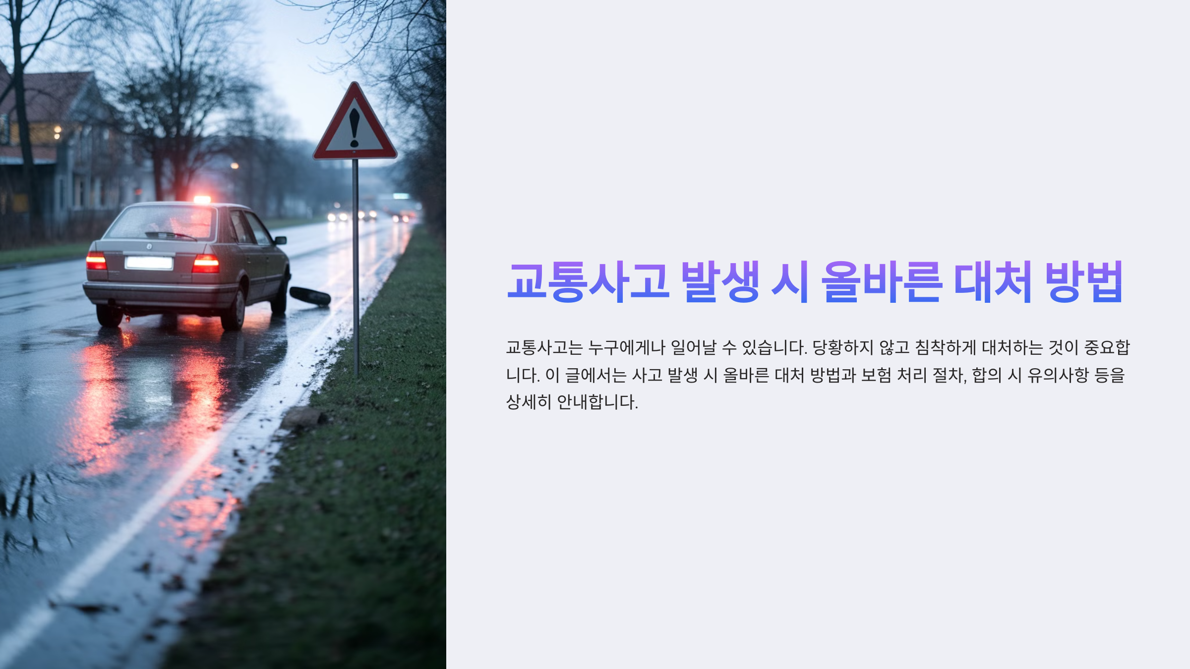 🚗 도로 위에서 예기치 못한 사고가 발생하면 누구나 당황하기 마련이에요. 하지만 침착하게 대처하면 피해를 최소화할 수 있답니다. 초보 운전자라도 이 글을 읽으면 사고 발생 시 무엇을 해야 하는지 명확하게 알 수 있어요.