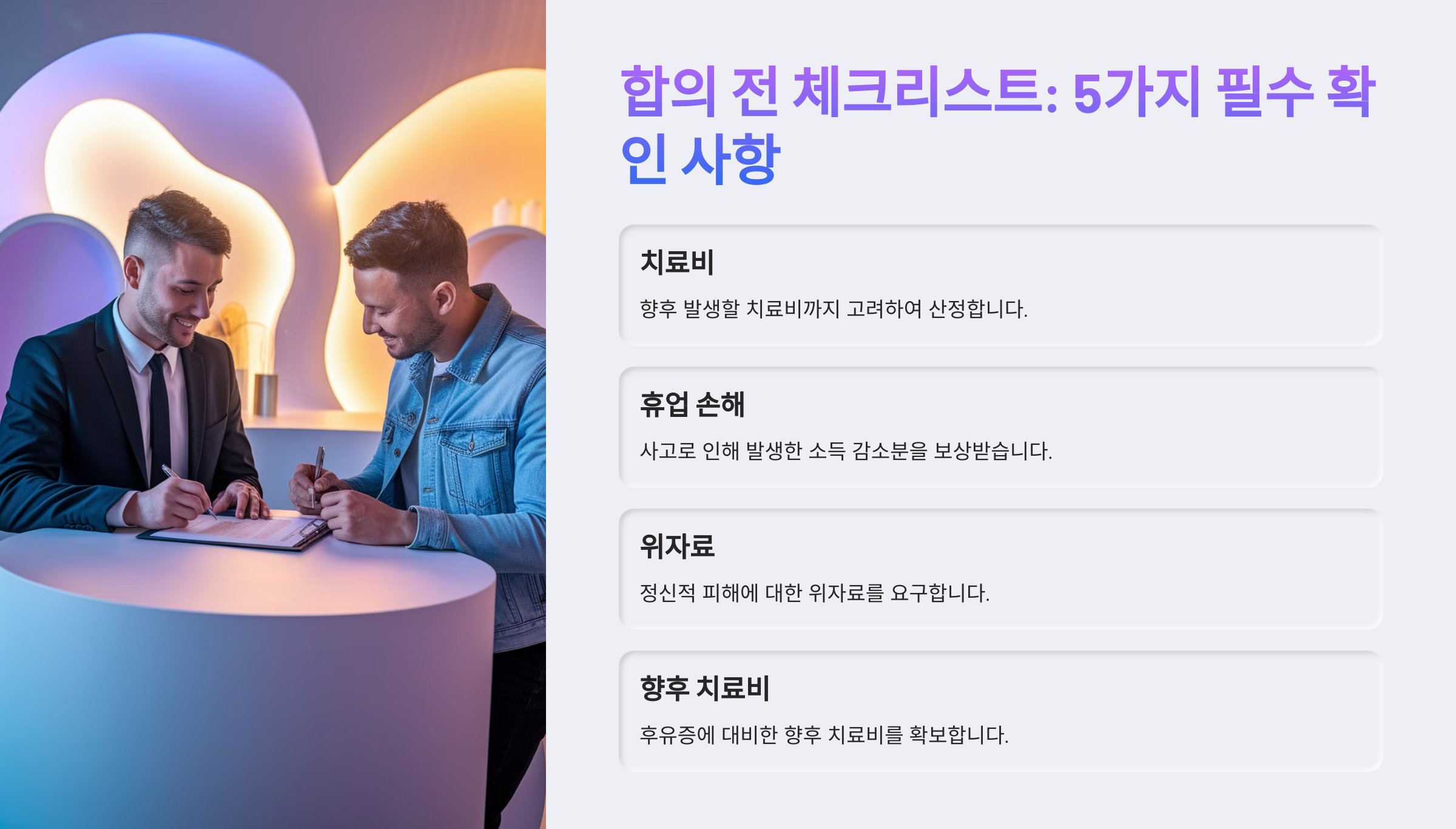 합의서에 '추후 치료비 청구 불가' 문구가 있는지 확인하세요.