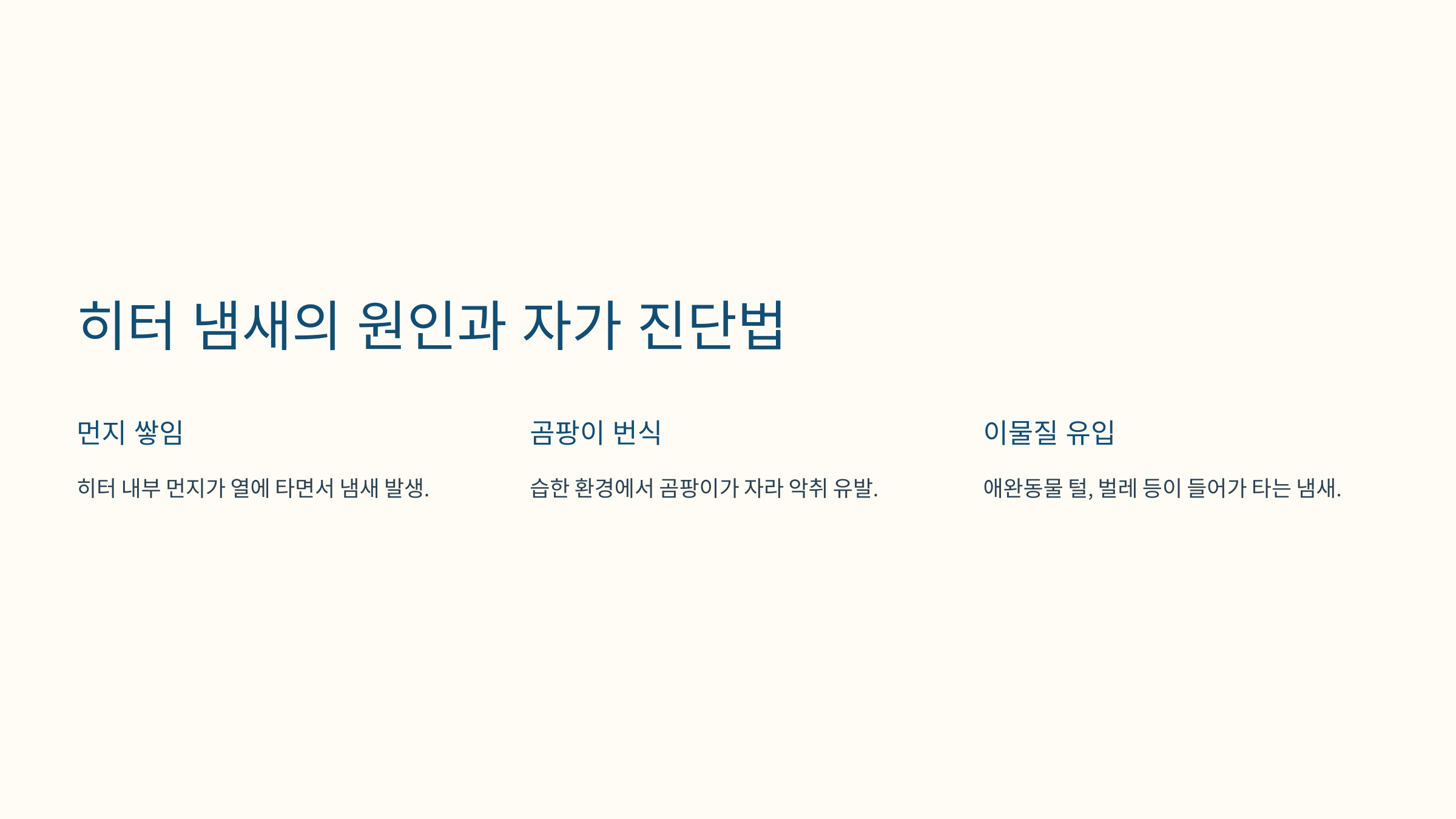 | 곰팡이 번식 | 퀴퀴한 곰팡이 냄새 | 히터 청소 & 필터 교체 |
