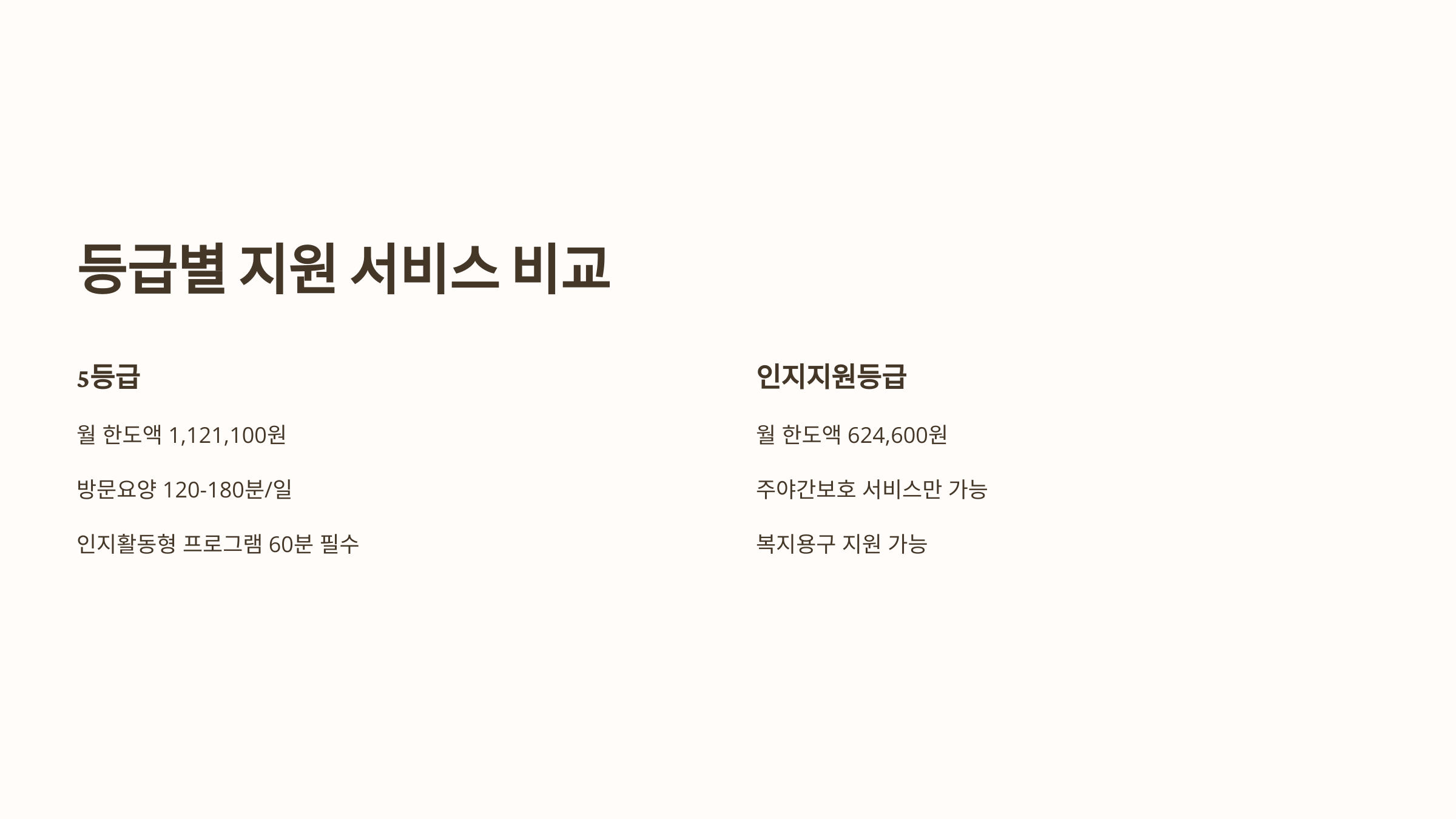 | 5등급 | 45점 이상 + 치매 | 인지기능 중심 |