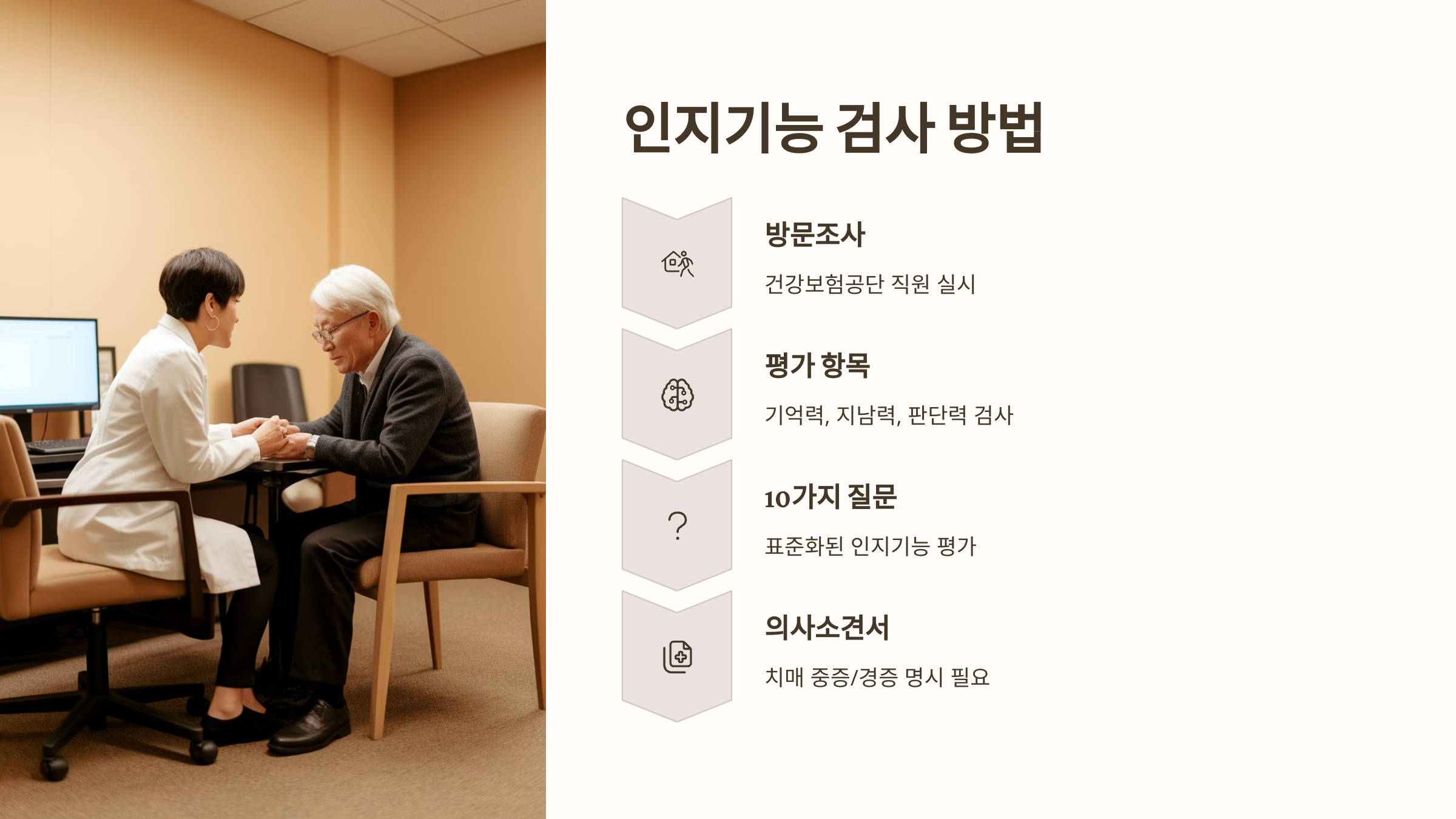 💡 꼭 기억하세요! 등급은 인지기능만으로 판단되지 않고, 실제 생활 의존도가 함께 평가된다는 점!