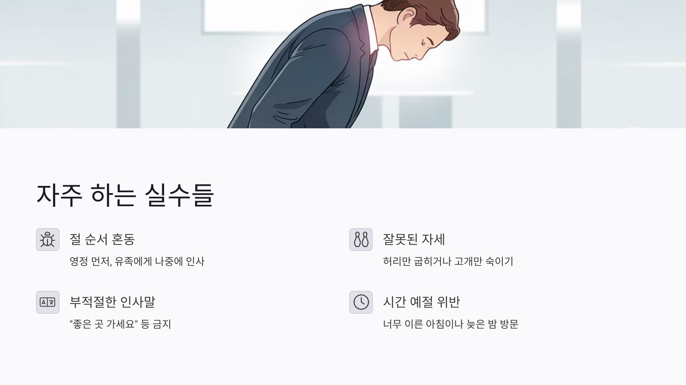 절을 하지 않더라도, 눈을 마주치며 조용히 고개 숙여 인사하거나 짧은 말로 마음을 전하는 방식도 충분히 예의로 인정받는 시대예요. “마음을 담은 조용한 행동”이 핵심이랍니다. 🙏