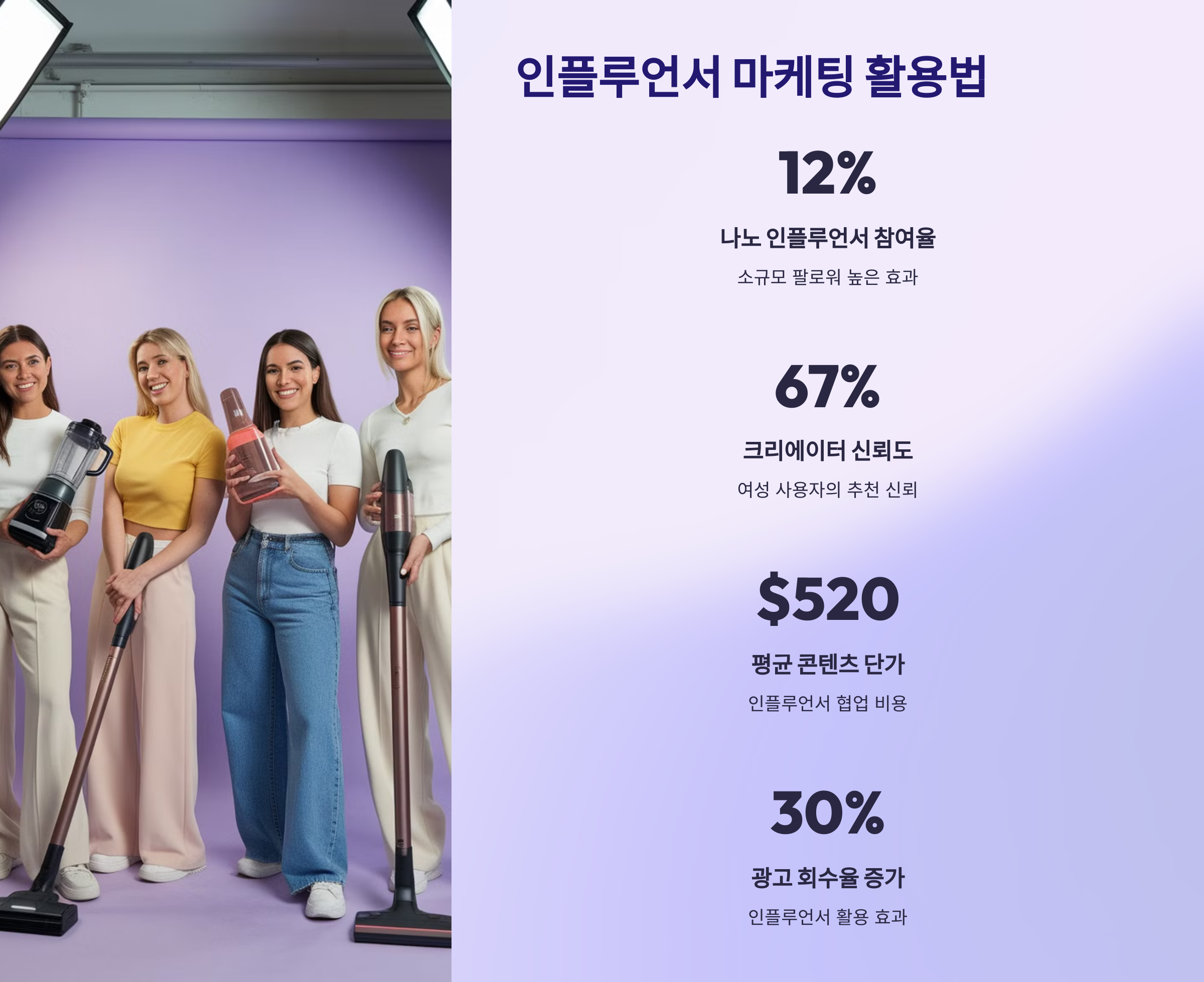 | 마이크로 인플루언서 | 팔로워 1만~10만, 틈새 타깃 집중 | 신뢰와 참여도 높은 캠페인에 활용 |
