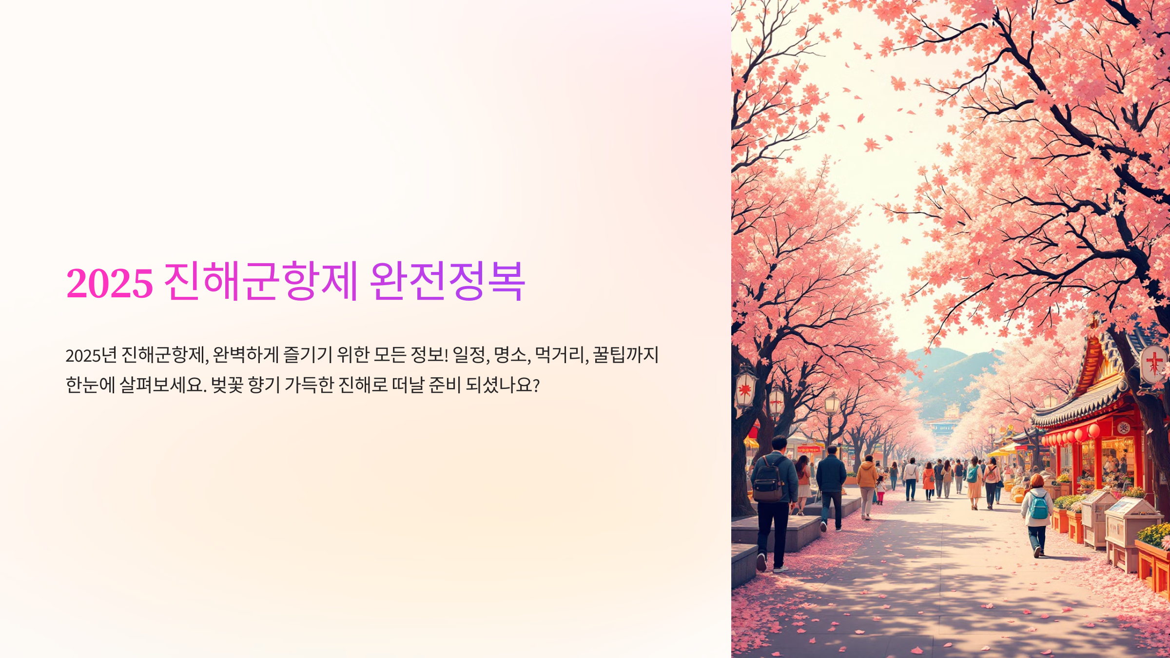 2025년에도 어김없이 대한민국 최대 벚꽃 축제인 **진해군항제**가 열려요! 🌸 매년 200만 명 이상의 관광객이 찾는 이 축제는 **진해의 아름다운 벚꽃과 해군 문화를 동시에 즐길 수 있는 유일한 행사**랍니다. 🎆