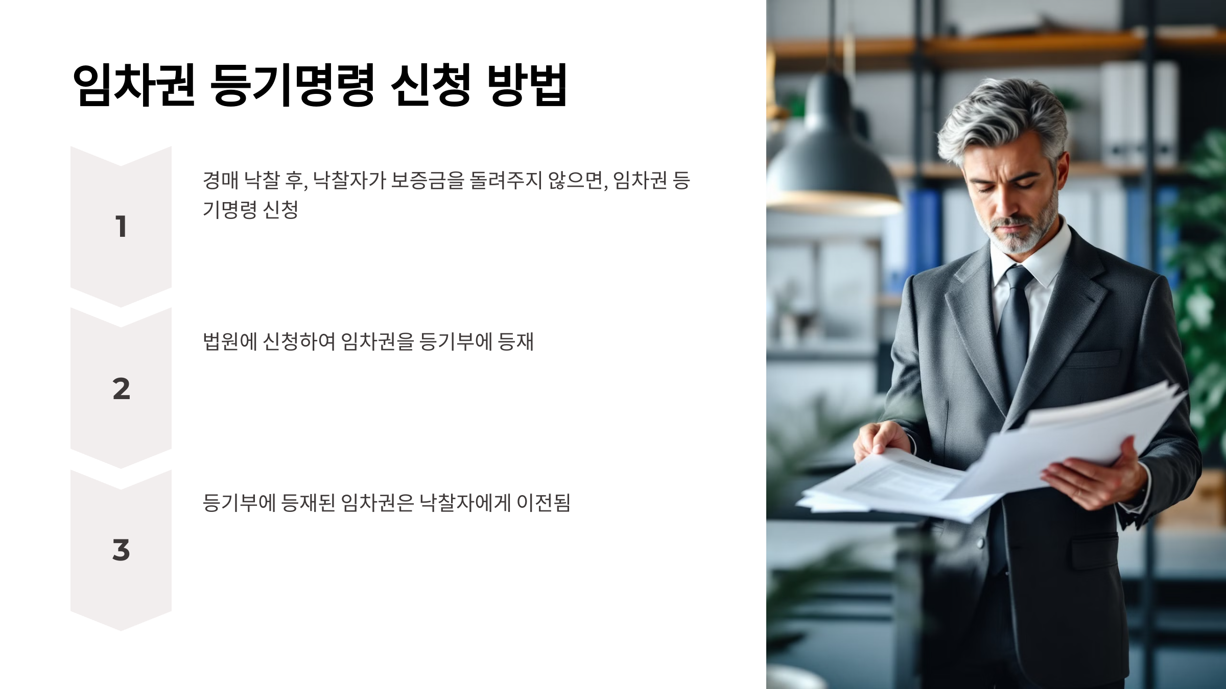신청 절차는 비교적 간단해요. 먼저 신청서를 작성하고, 계약서 사본, 전입신고 내역, 확정일자 자료 등을 첨부해요. 법원에 서류를 제출한 뒤 심사를 거쳐 등기명령이 내려지면 세입자는 이사를 가더라도 보증금을 받을 권리를 유지할 수 있답니다.