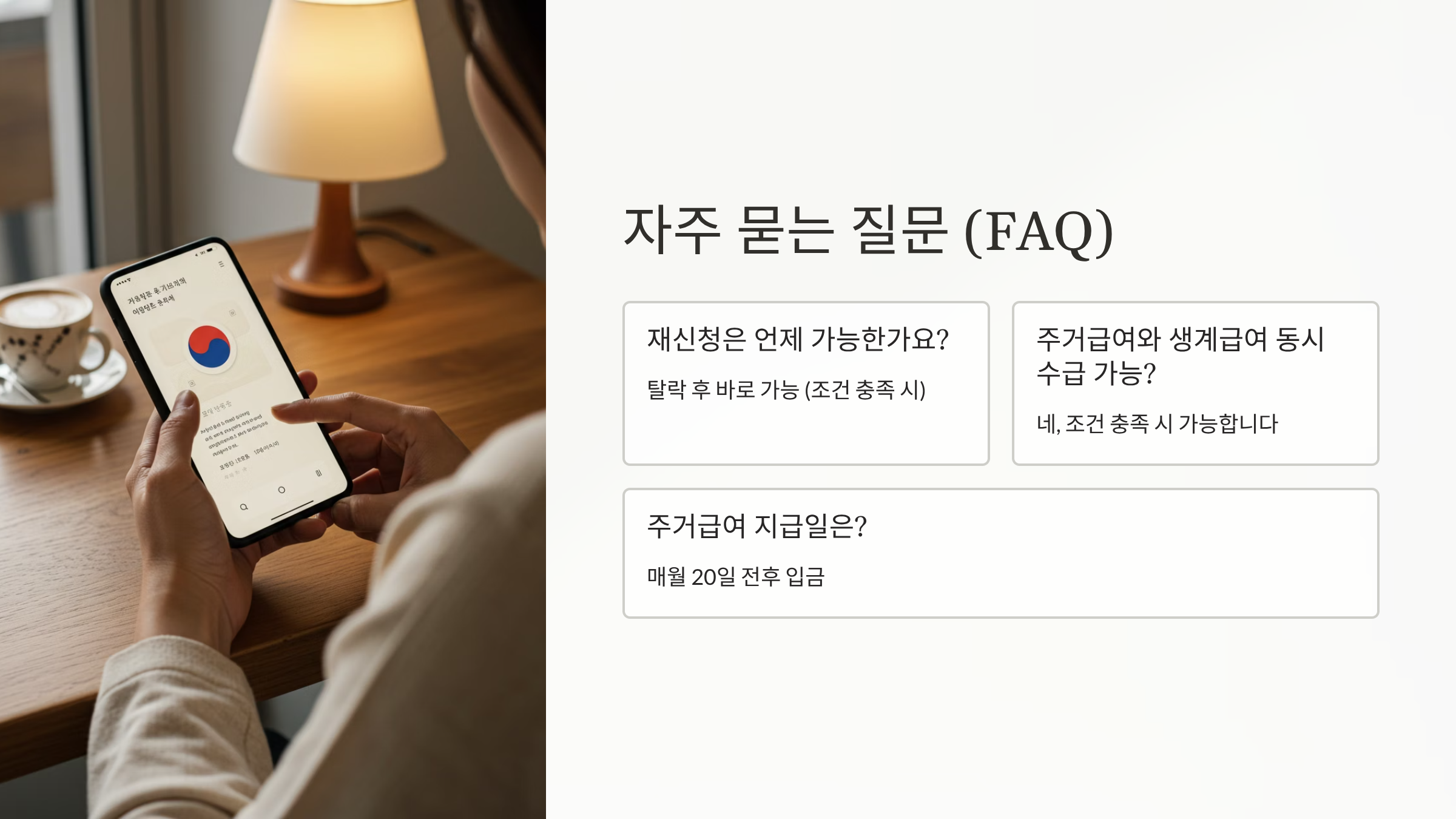 | 소득기준 | 기준중위소득 50% 이하 | 기준중위소득 48% 이하 |