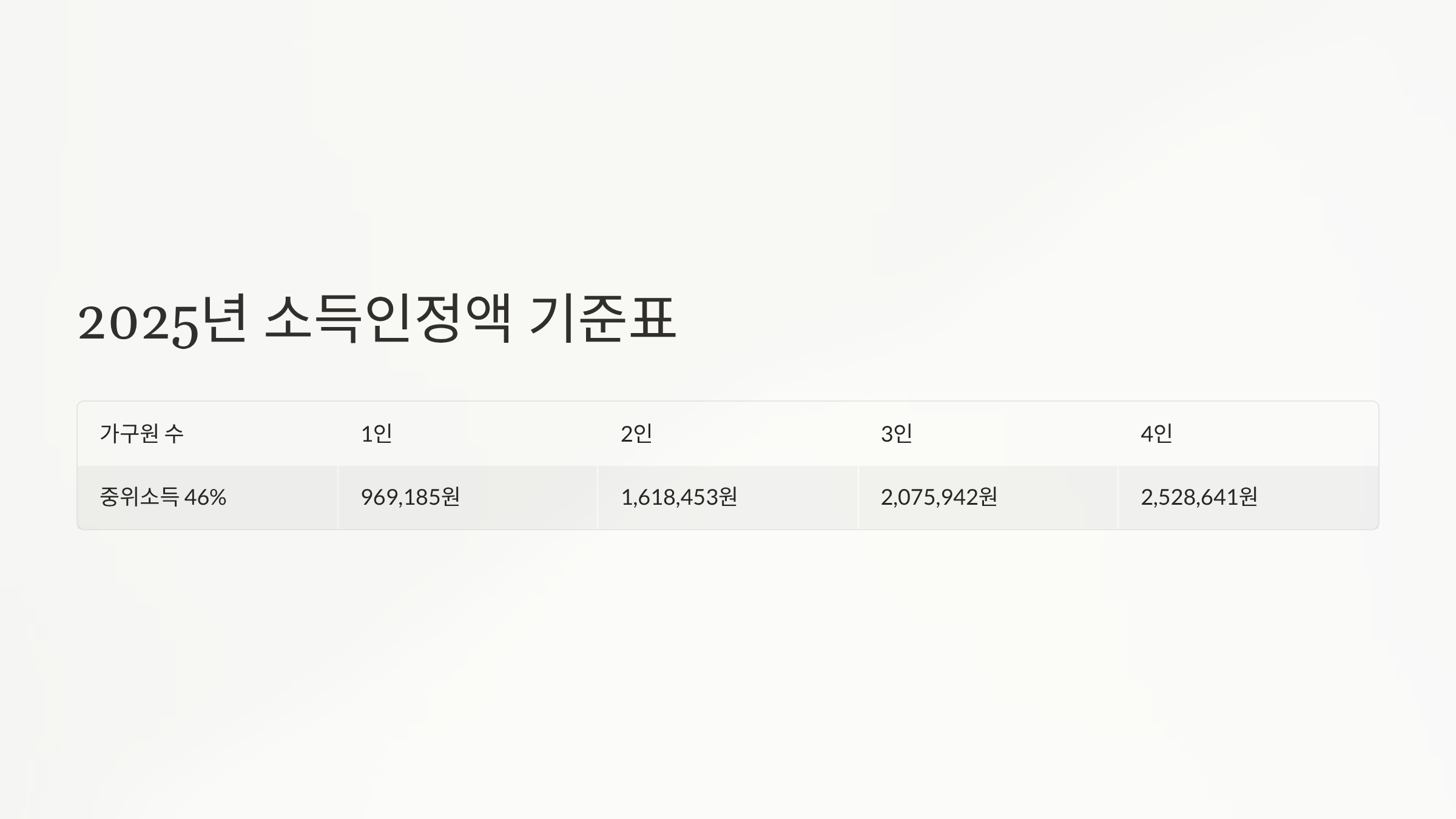 📈 2025년 가구원수별 소득인정액 기준