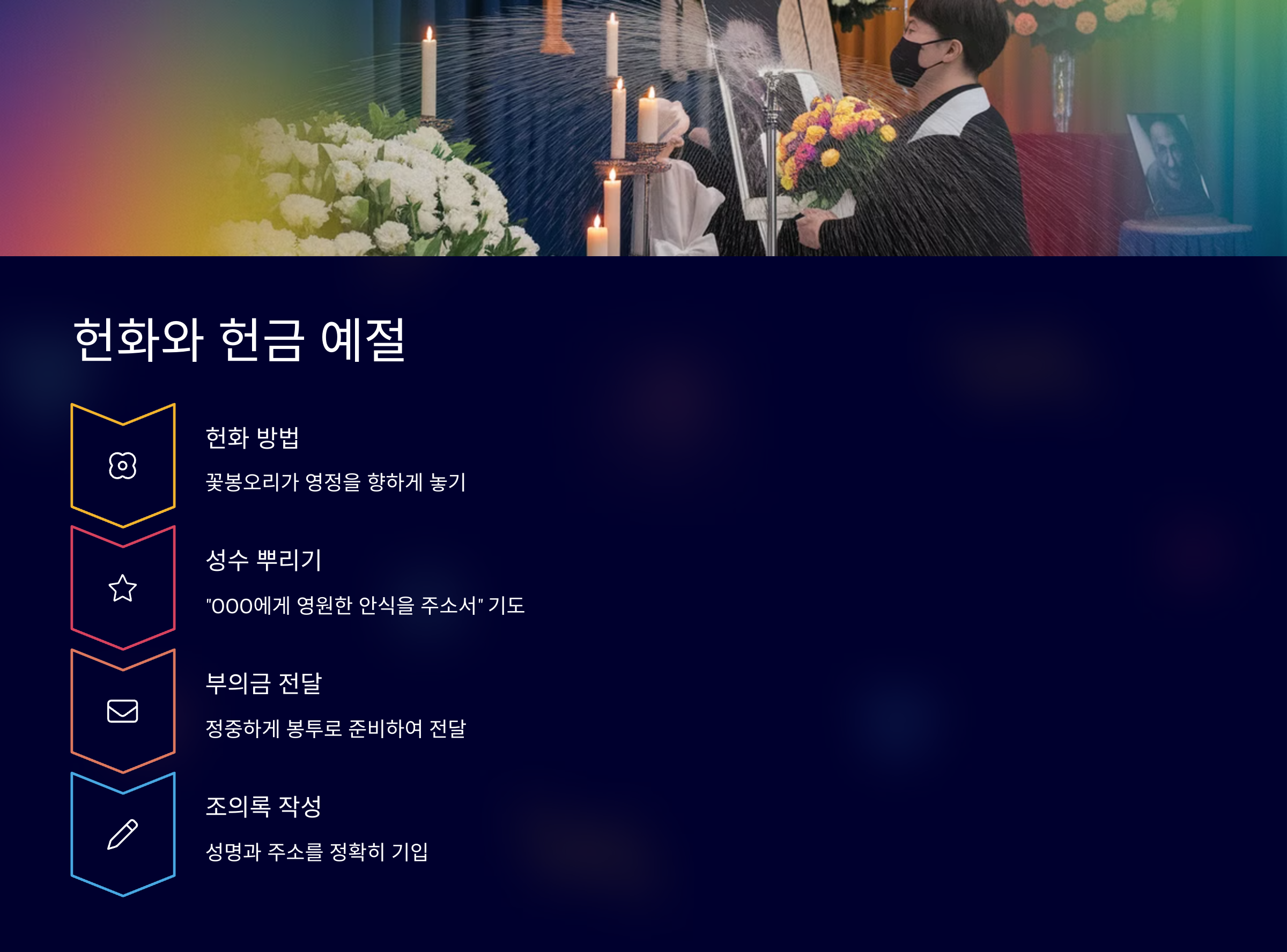 🙏 헌화와 헌금은 단순한 형식이 아니라, 고인을 향한 진심 어린 기도로 이어져요. 무언의 기도가 가장 큰 위로일 수 있어요.