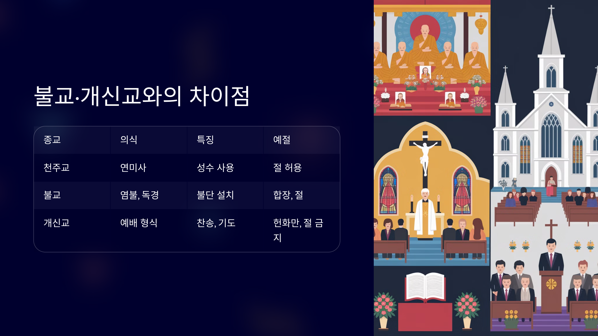 | 구분 | 천주교 | 불교 | 개신교 |