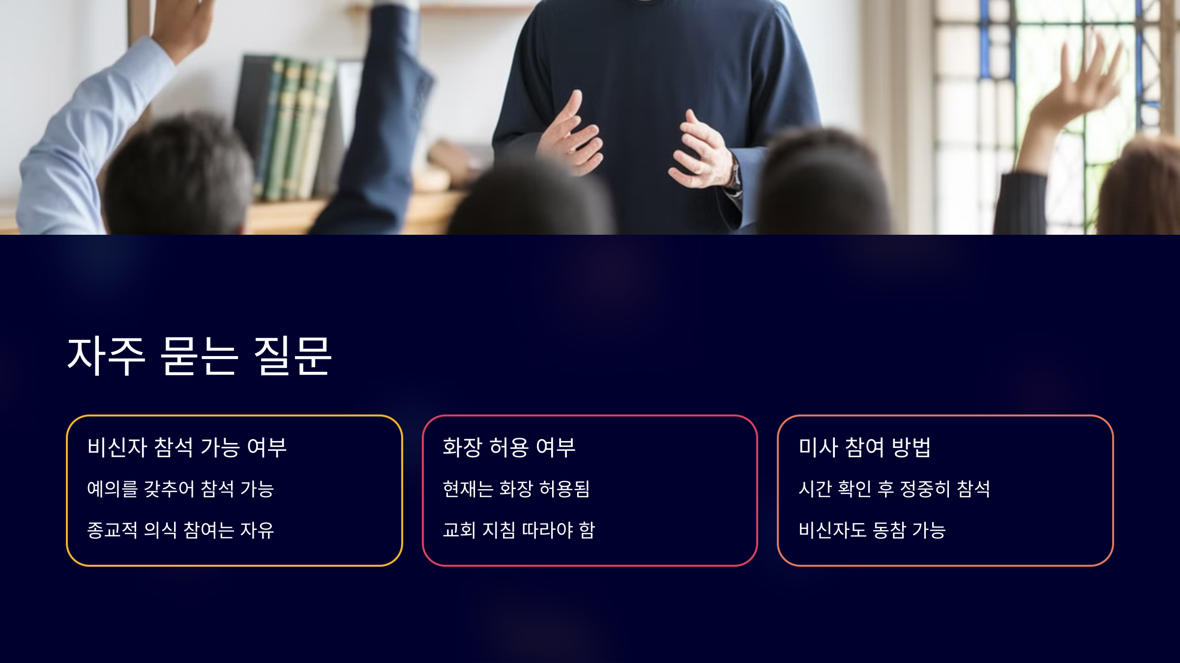 Q6. 종교가 달라도 미사 참여가 가능한가요?