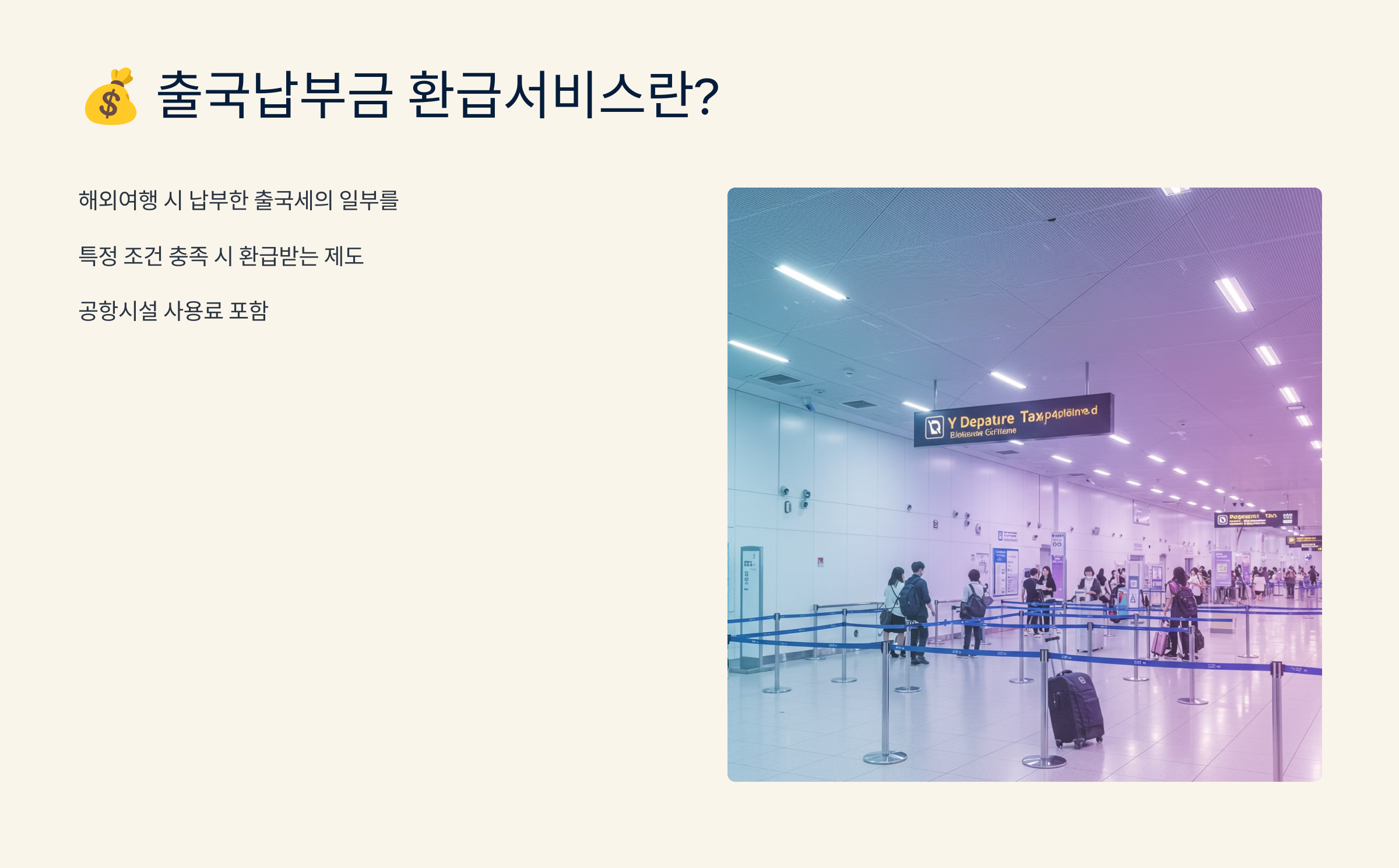 출국납부금 환급서비스는 해외여행이나 출장 시 납부한 출국납부금을 특정 조건에 따라 돌려받을 수 있는 제도예요. 많은 분들이 이 서비스의 존재를 모르거나 신청 방법을 몰라서 환급받지 못하고 있는데, 오늘은 이 유용한 서비스에 대해 자세히 알아볼게요! 💸