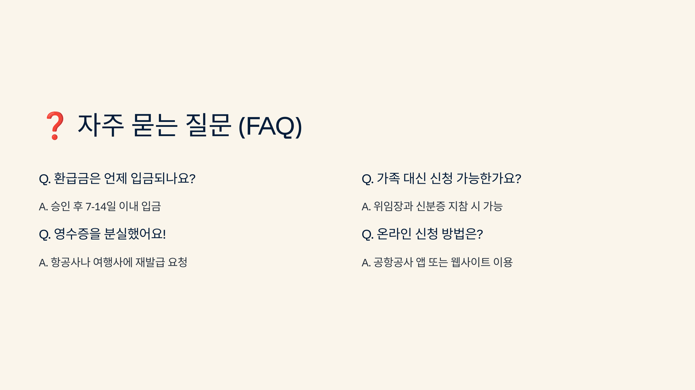 나의 생각으로는 이 제도가 더 많이 알려져야 한다고 봐요. 실제로 환급 대상임에도 불구하고 모르고 지나가는 경우가 너무 많거든요. 특히 유아를 동반한 가족 여행객들의 경우, 아이 돌보느라 바빠서 이런 혜택을 놓치기 쉬운데, 꼭 챙기시면 좋겠어요. 환급금이 1만원이라고 작게 생각할 수도 있지만, 가족 단위로 여행하는 경우 꽤 의미 있는 금액이 될 수 있답니다! 💰