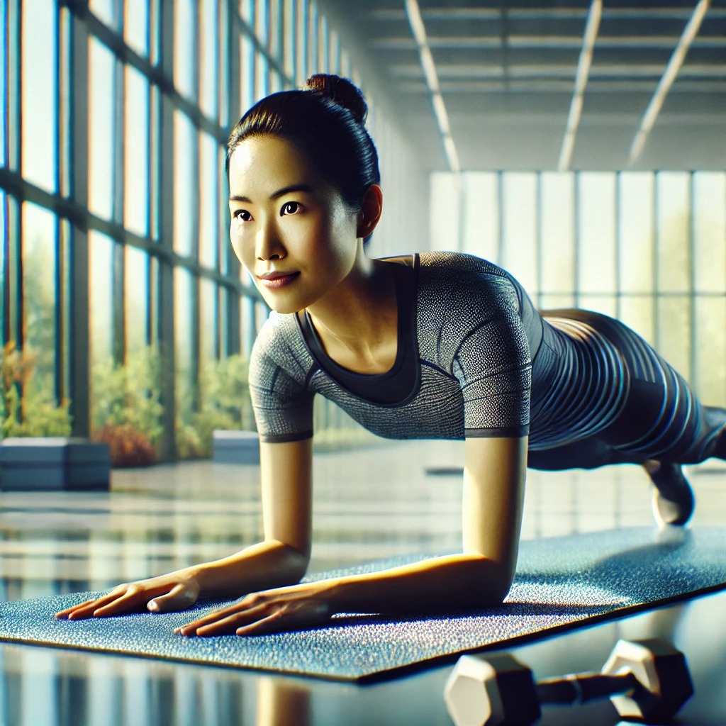 플랭크: 코어 전체를 강화하는 대표적인 운동입니다.