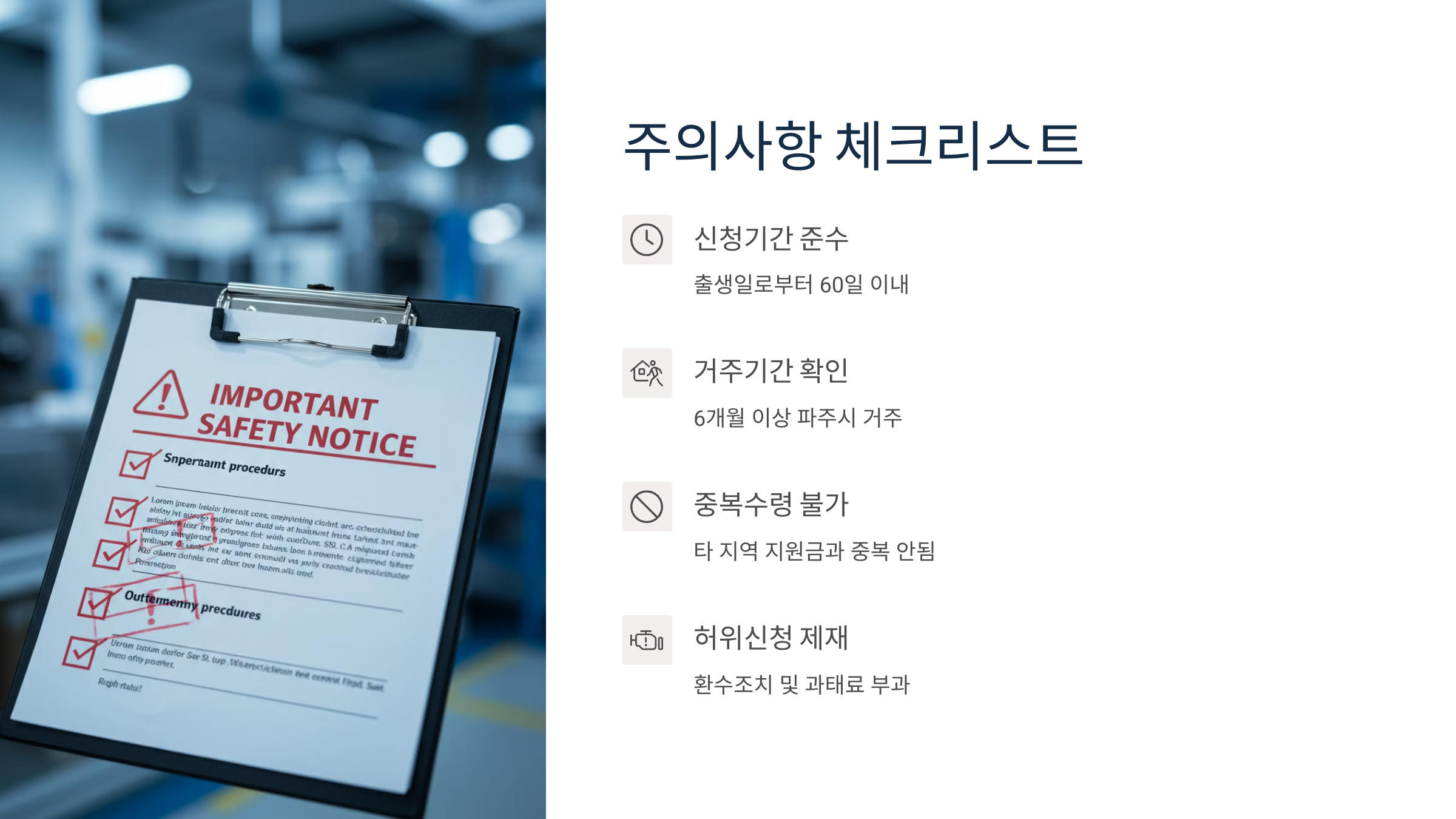 ✅출산지원금은 단순한 금전 지원이 아니라, 출산 초기와 1년 후 경제적 부담을 줄여주는 중요한 혜택이에요. 하지만, 아래의 유의사항을 꼭 확인해야 해요.