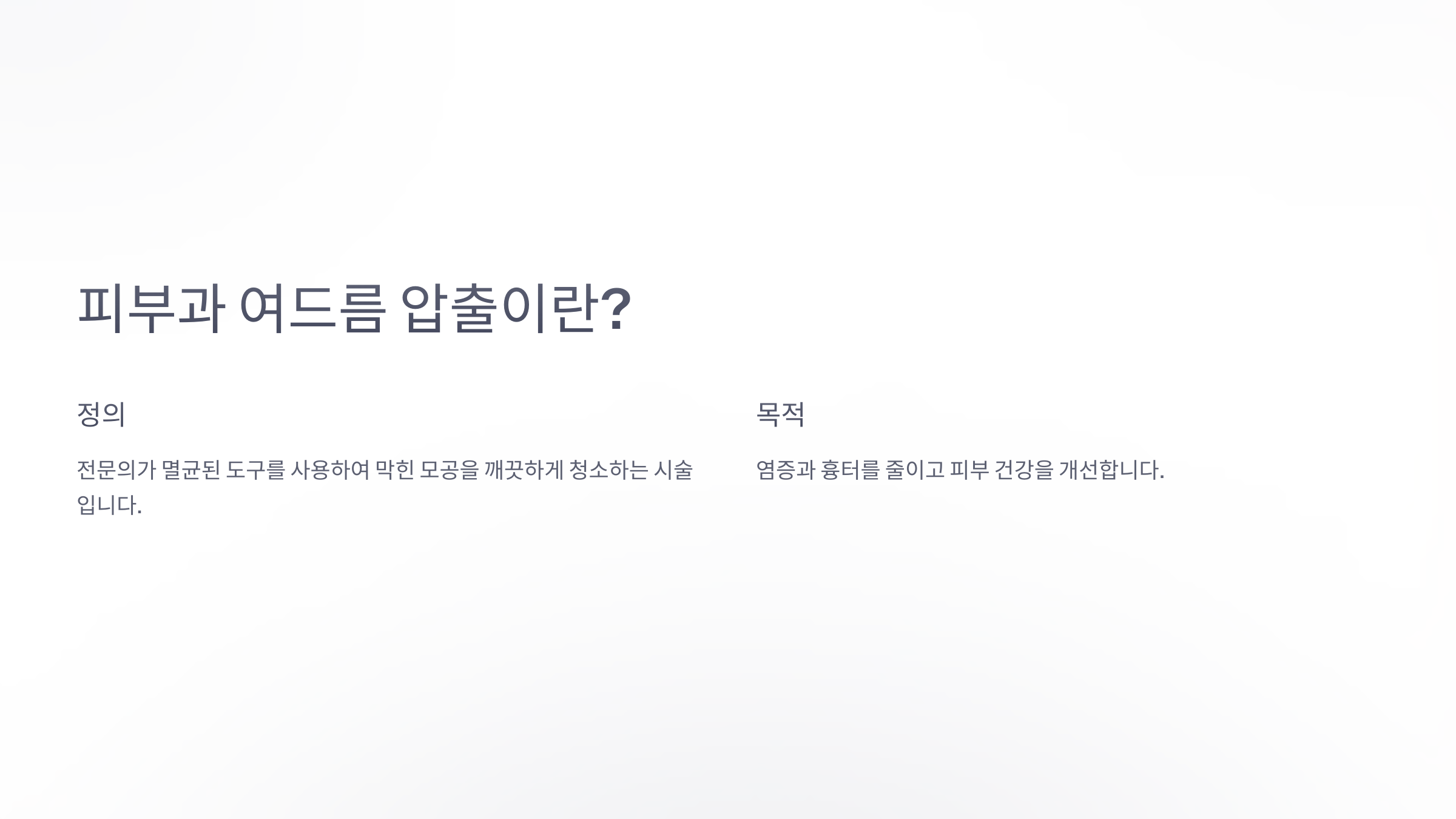 피부과 여드름 압출은 피부에 쌓인 피지, 각질, 염증성 여드름을 의학적으로 제거하는 시술이에요. 이 과정은 전문가가 피부를 철저히 소독하고, 멸균된 도구를 사용해 여드름을 짜는 방식으로 이루어져요. 일반적으로 블랙헤드, 화이트헤드, 농포성 여드름을 효과적으로 제거할 수 있어요.