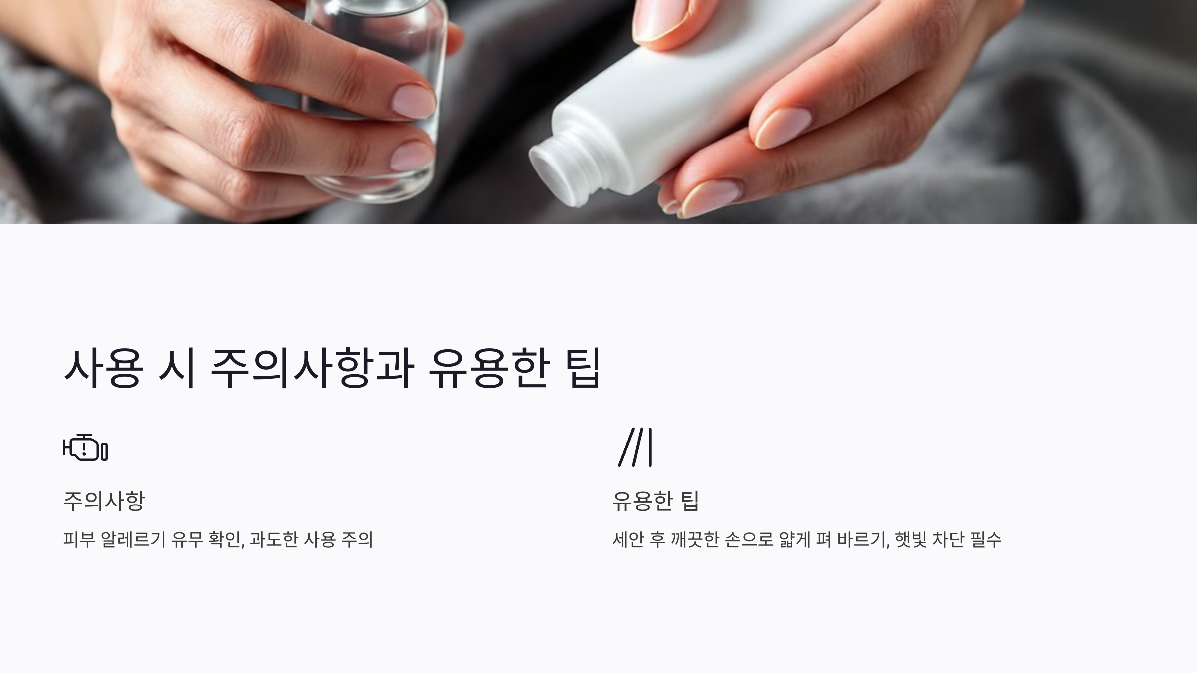 사용 전에는 반드시 손을 깨끗이 씻어 위생적으로 관리해야 해요. 손에 세균이 묻어 있으면 피부가 감염될 위험이 높아지거든요. 그리고 시술 후 자외선 차단은 필수예요. 마데카솔을 바른 후에도 자외선 차단제를 덧발라 피부를 보호해주세요.