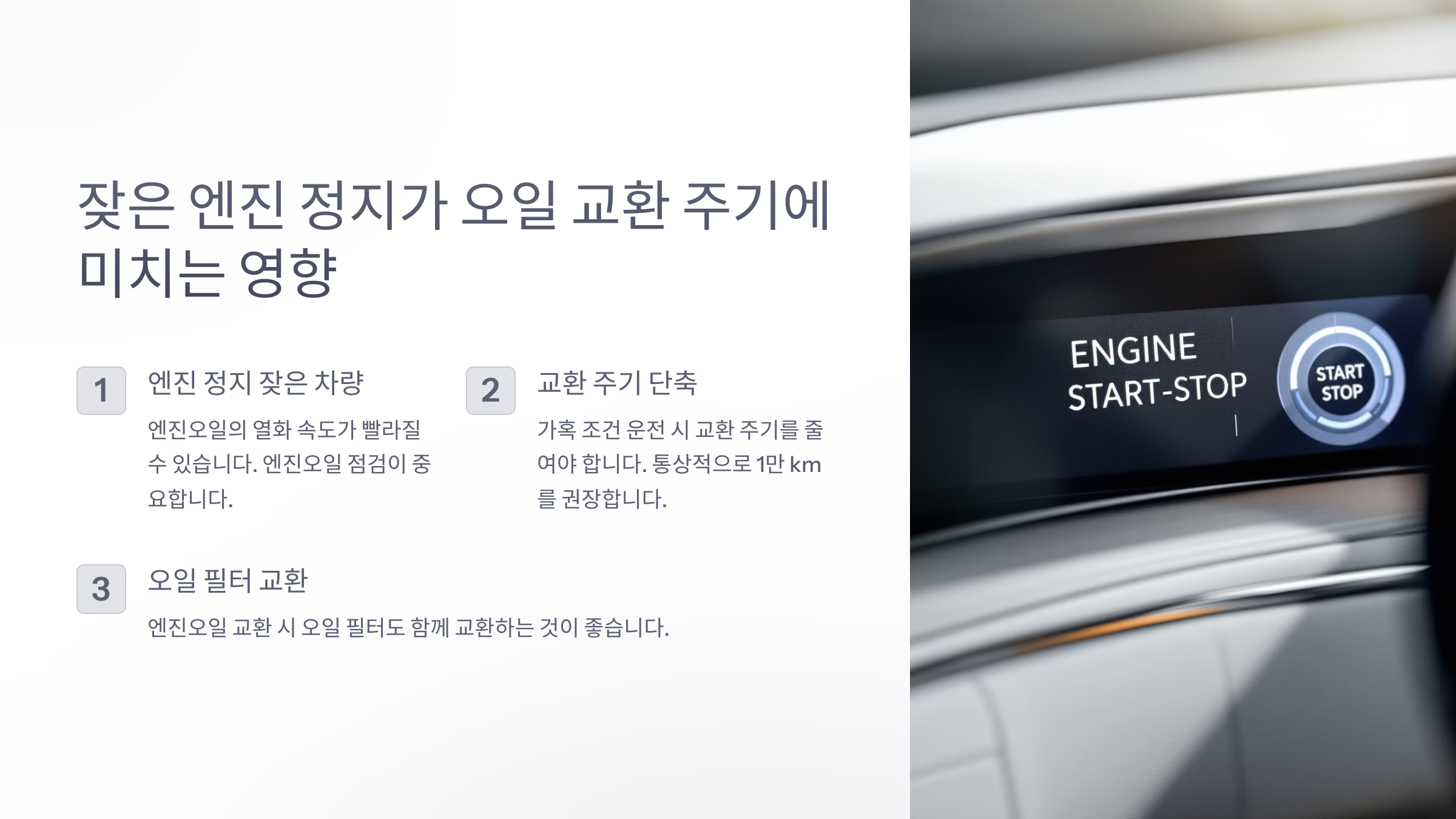엔진 정지가 잦은 차량, 오일 교환 주기 영향