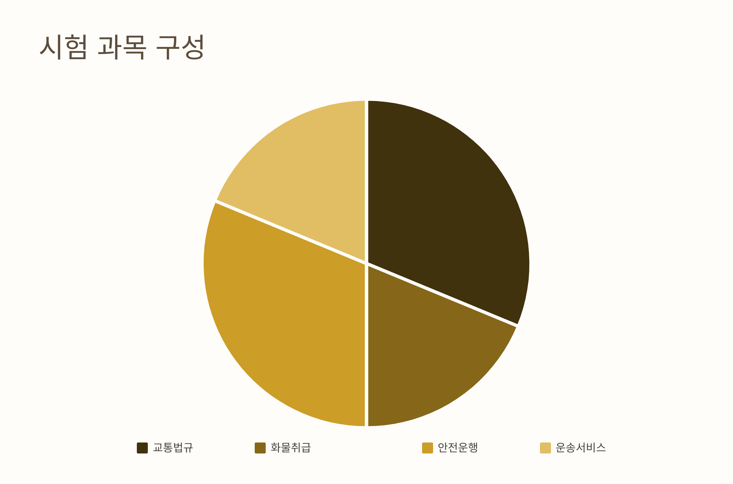 화물운송자격증 시험은 총 80문항으로 구성되어 있고, 4개의 주요 과목으로 나누어져 있어요. 과목별로 문항 수가 다르며, 총점 100점 만점 중 60점 이상(80문제 중 48문제 이상) 맞아야 합격이에요.
