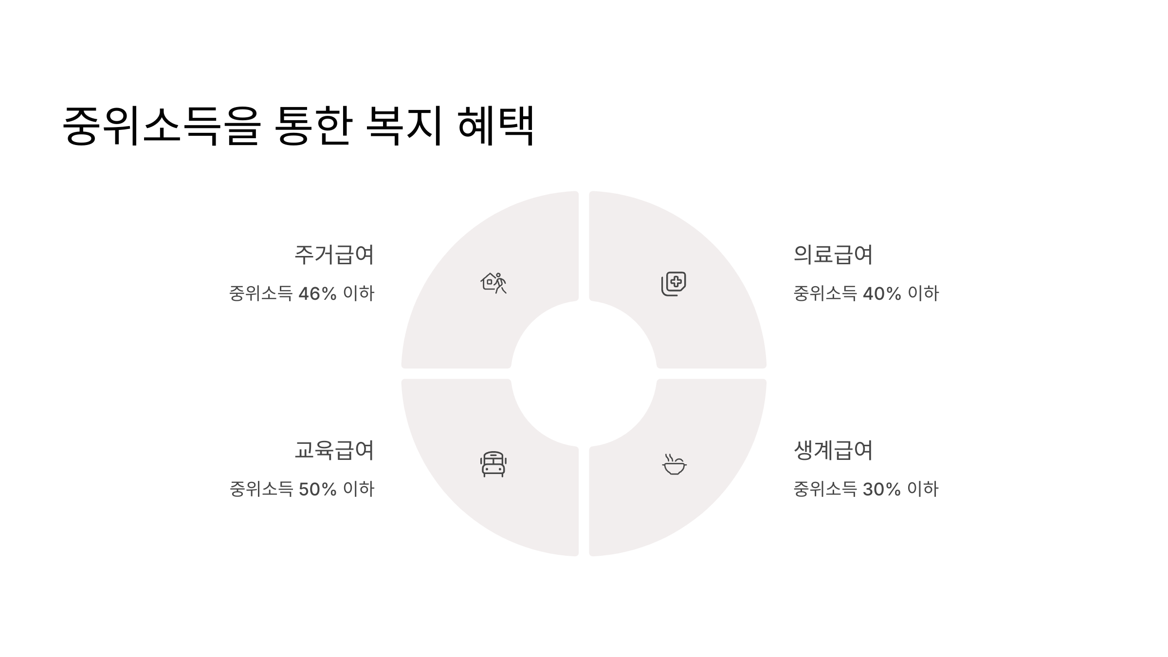 정부는 중위소득을 기준으로 다양한 복지 혜택을 제공해요. 이는 가구 소득이 중위소득의 일정 비율 이하일 때 혜택을 받을 수 있는 구조로, 저소득 가구를 지원하는 중요한 수단이에요.