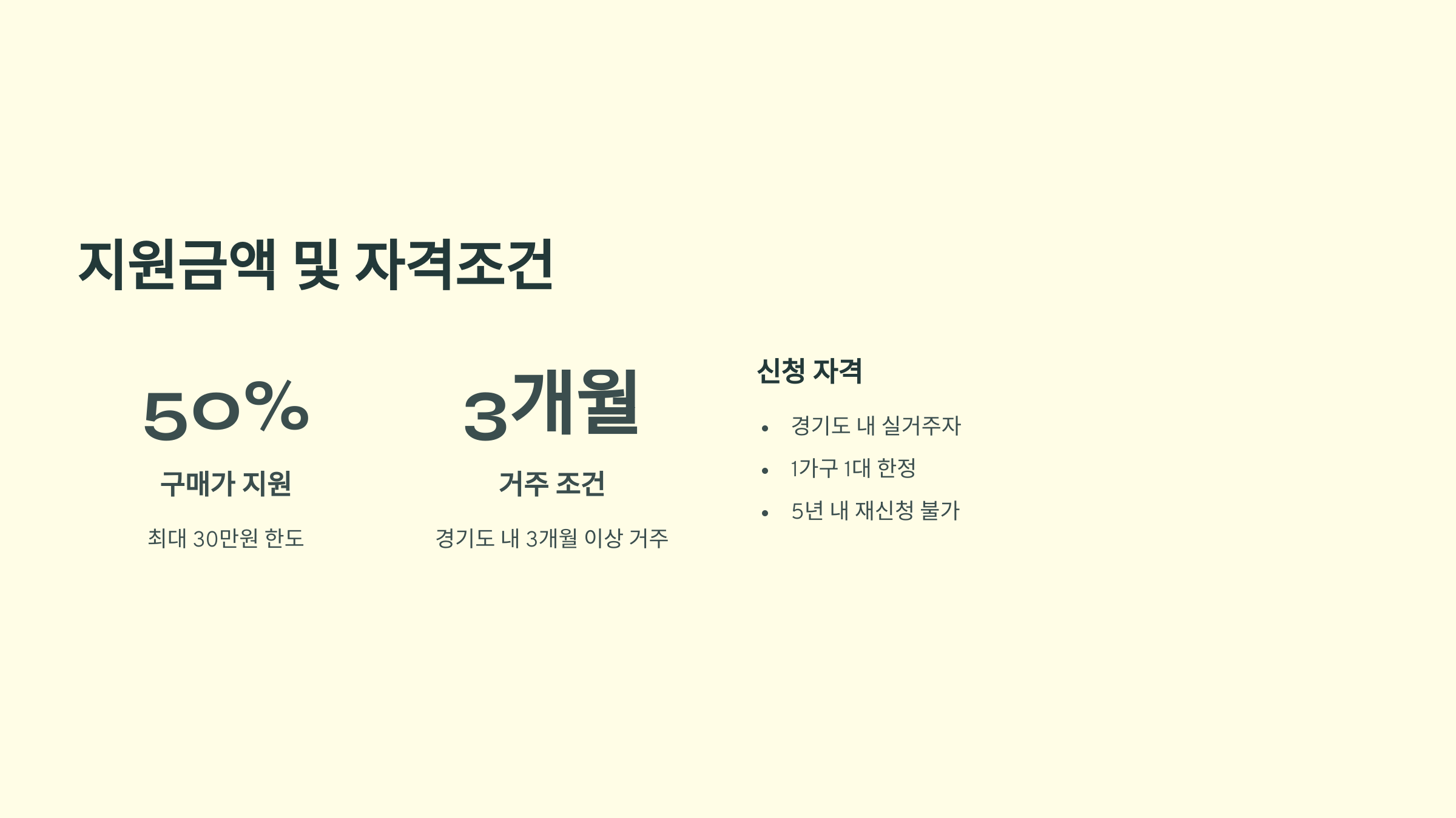 이 사업의 특징은 각 시군이 자체적으로 예산을 편성하고 운영한다는 점이에요. 그래서 지역마다 지원금액, 신청자격, 지원대수 등이 조금씩 달라요. 예를 들어 수원시는 가구당 최대 30만원을 지원하지만, 성남시는 50만원까지 지원하는 식이죠. 또한 일부 지역은 선착순으로 운영하고, 어떤 지역은 추첨을 통해 대상자를 선정해요. 이런 차이점 때문에 거주하시는 지역의 정확한 정보를 확인하는 것이 중요하답니다.