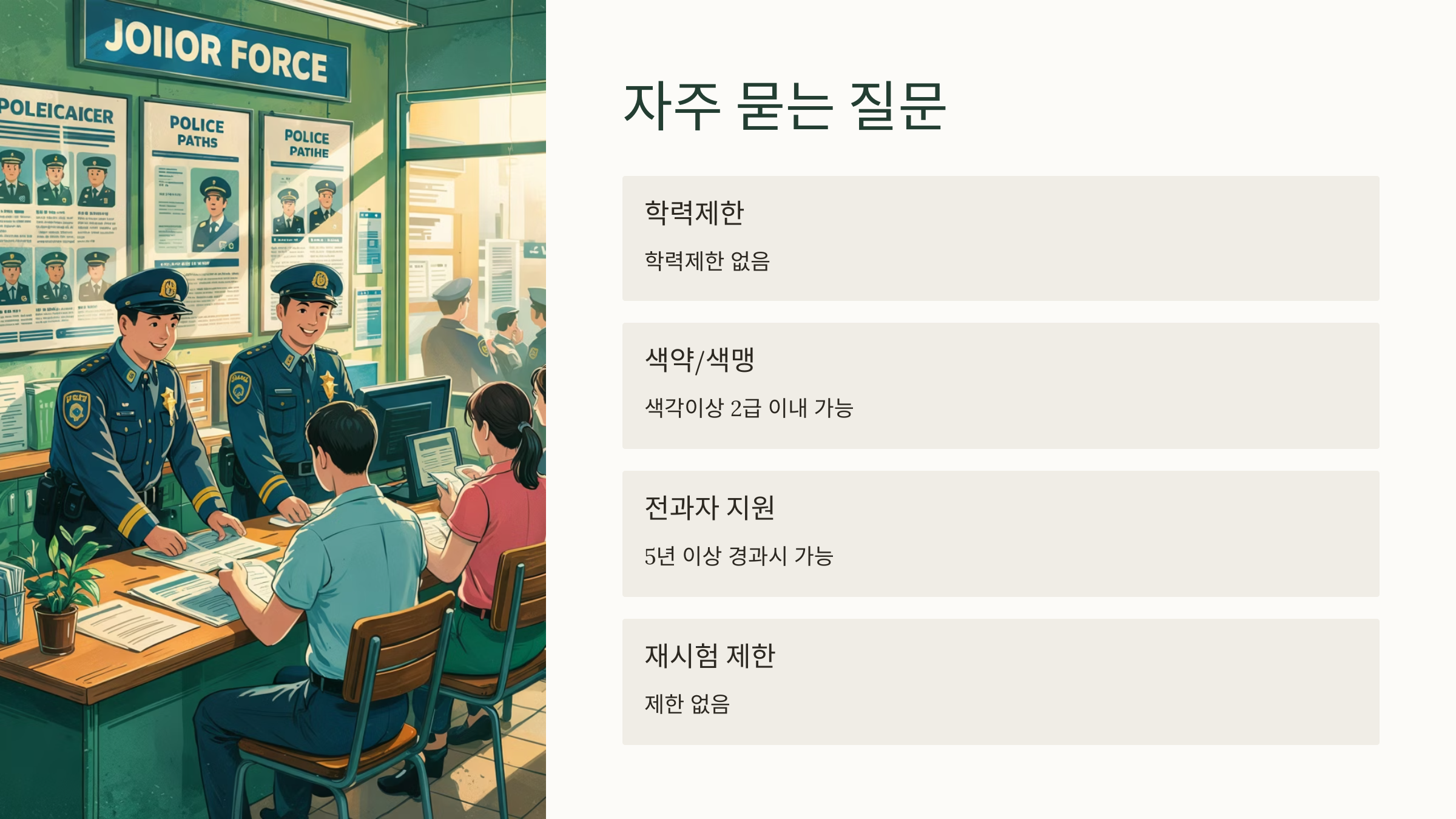 특히 순경, 경위 등의 직급으로 채용되는 이 시험은 많은 사람들이 공무원+안정된 직업+사회적 사명감을 동시에 실현할 수 있는 진로로 선택하고 있어요.